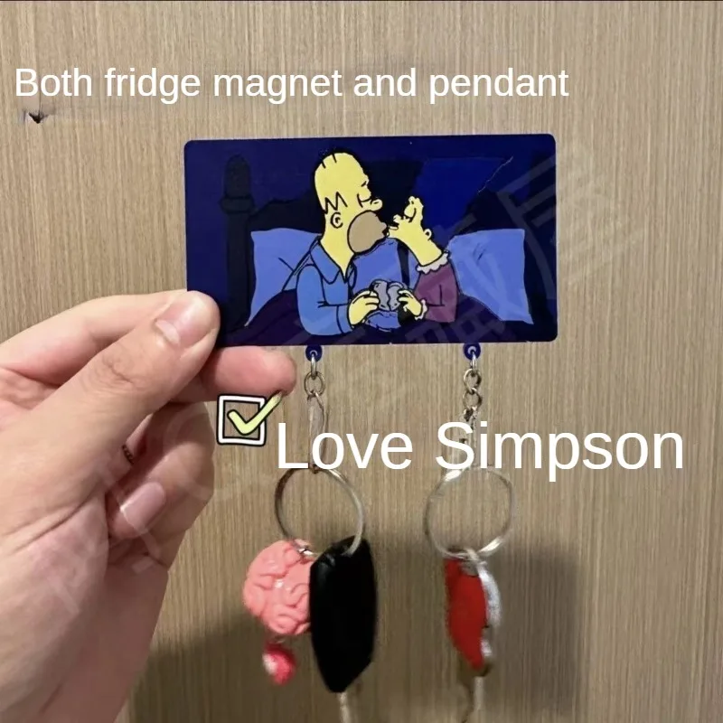 Comprar Simpsons Bart-llavero de pared con colgante de Anime para pareja, llavero para amantes, decoración del hogar, pegatinas para refrigerador para niña