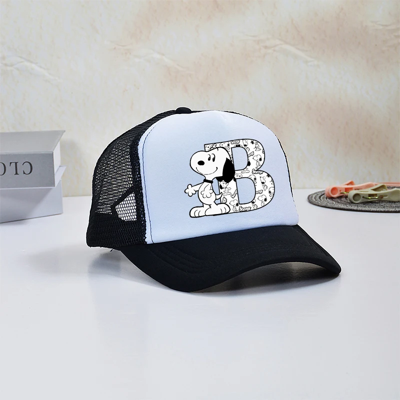 Snoopys Gorras de béisbol para niños Dibujos animados Nombre de la letra Verano Deporte al aire libre Sombrero de malla transpirable Lindo Anime Sunbonnet Regalos de cumpleaños