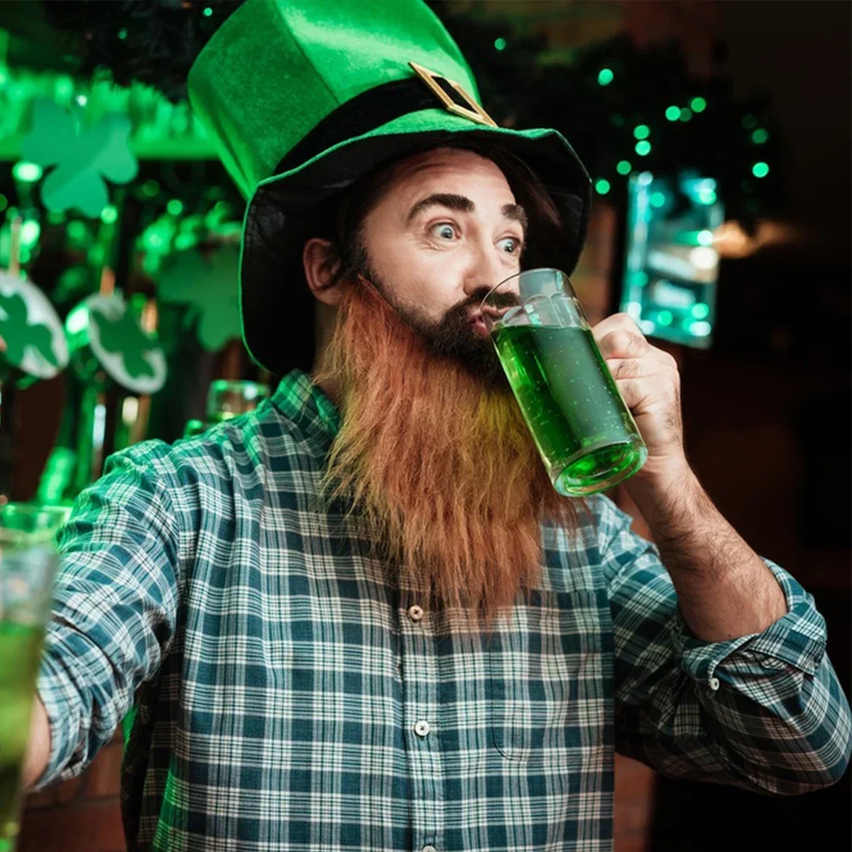 Sombrero de copa del Día de San Patricio, disfraz de celebración verde de barba falsa para Festival irlandés, suministros de decoración para fiesta de cumpleaños