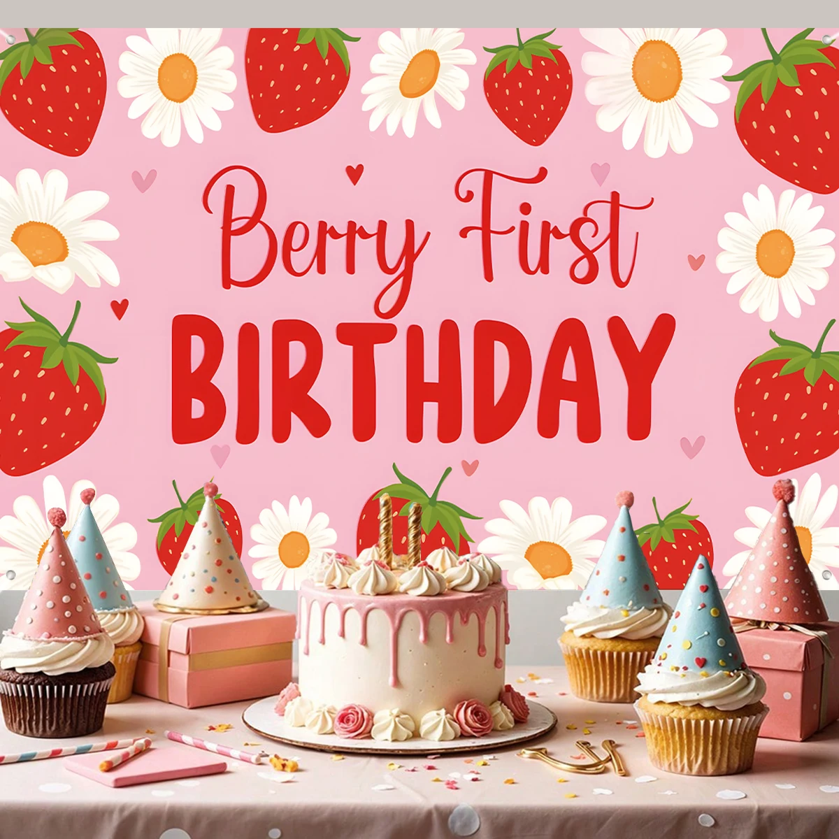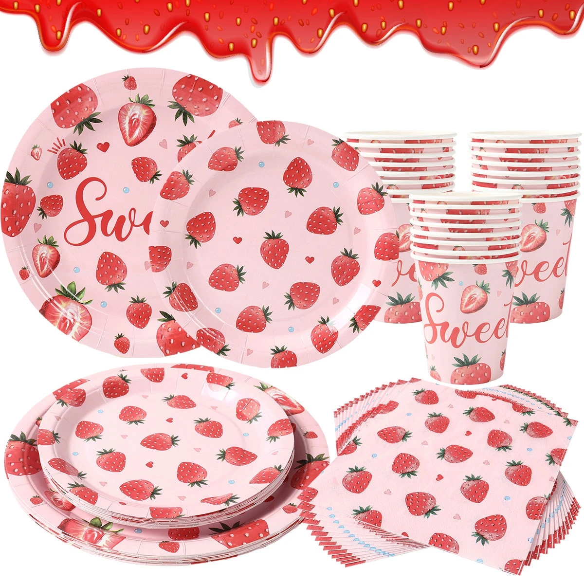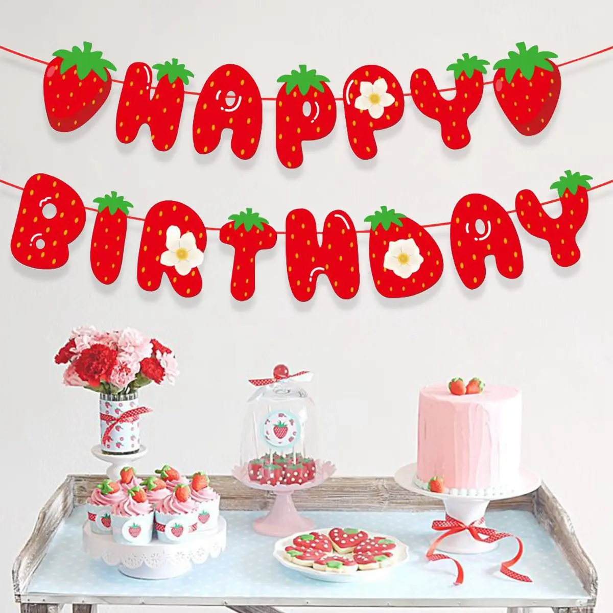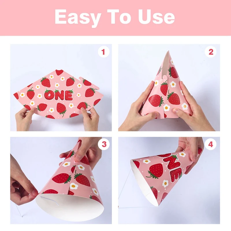 Sombrero de cumpleaños de fresa dulce, decoraciones de fiesta de cumpleaños con temática de fresa, regalos para niños, suministros para Baby Shower