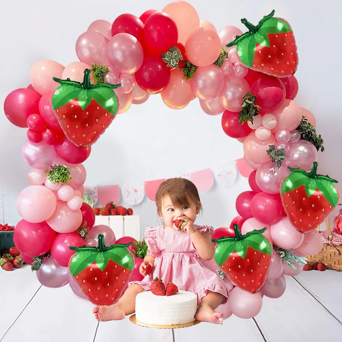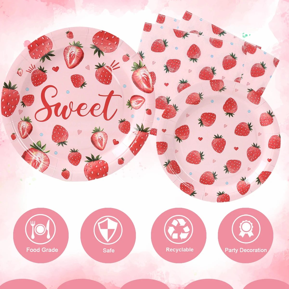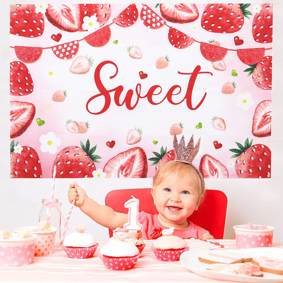 Sombrero de cumpleaños de fresa dulce, decoraciones de fiesta de cumpleaños con temática de fresa, regalos para niños, suministros para Baby Shower