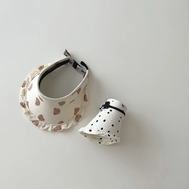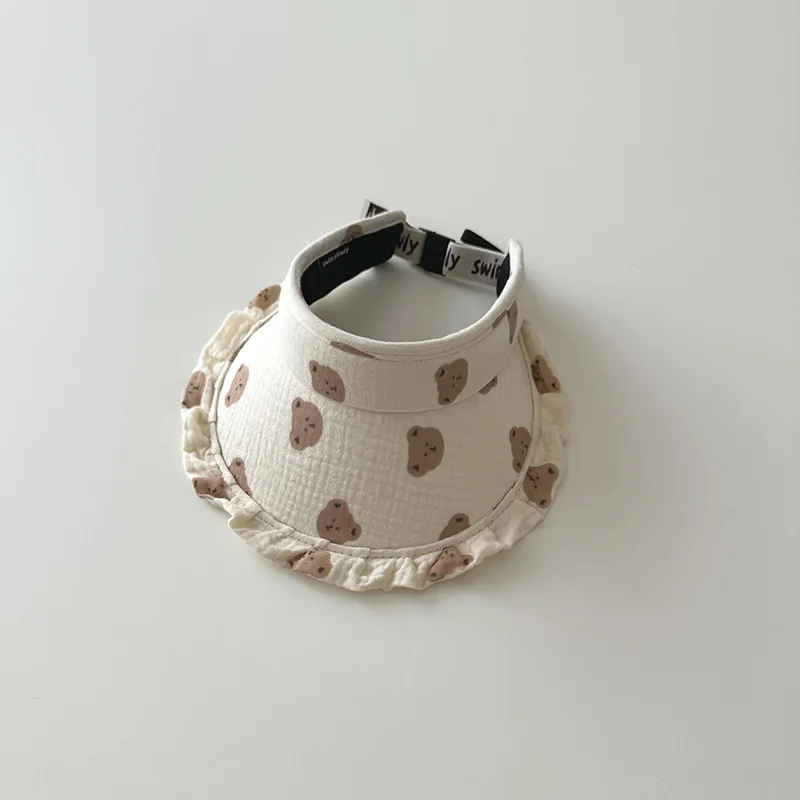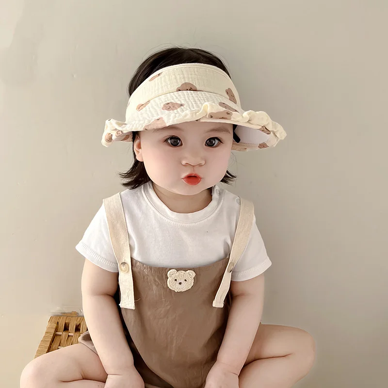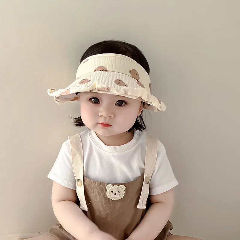 Sombrero con estampado de oso de dibujos animados para niños y niñas, gorra de sol con tapa vacía, ajustable, sombrilla para bebé, accesorios coreanos para niños