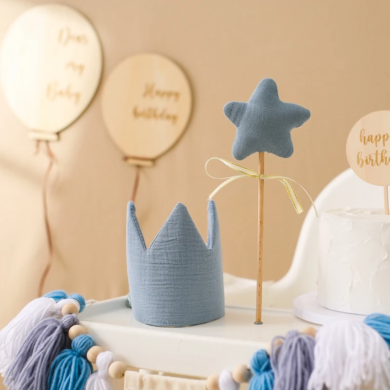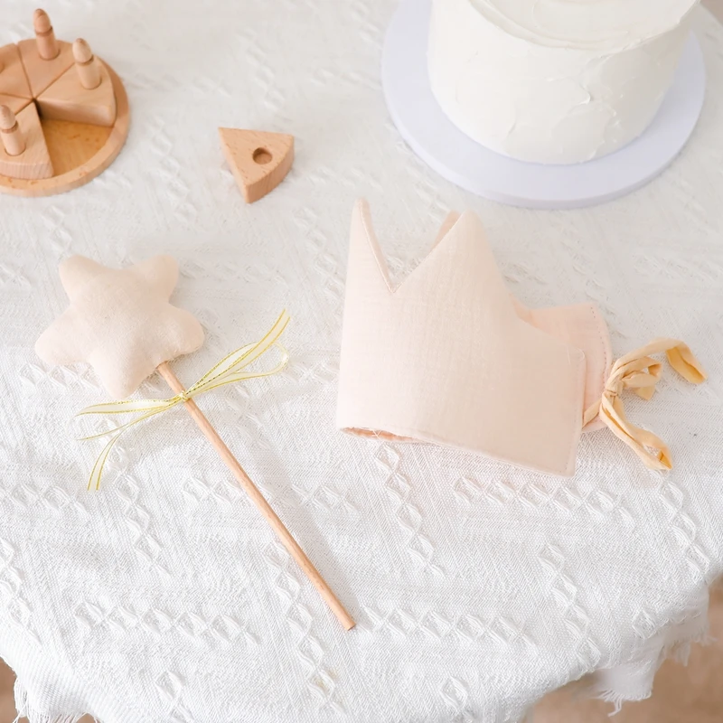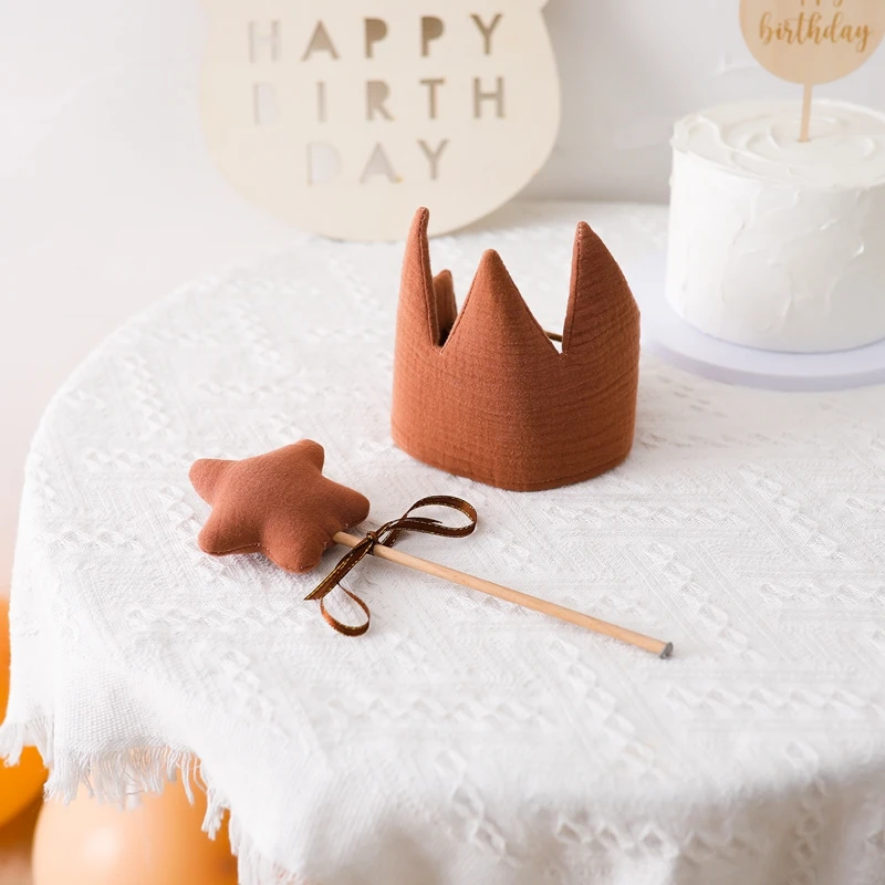 Sombrero de algodón para fiesta de cumpleaños para bebé, corona para niños, diadema con bola de lana, sombrero para fotografía de fiesta para niños, regalo de decoración de cumpleaños infantil