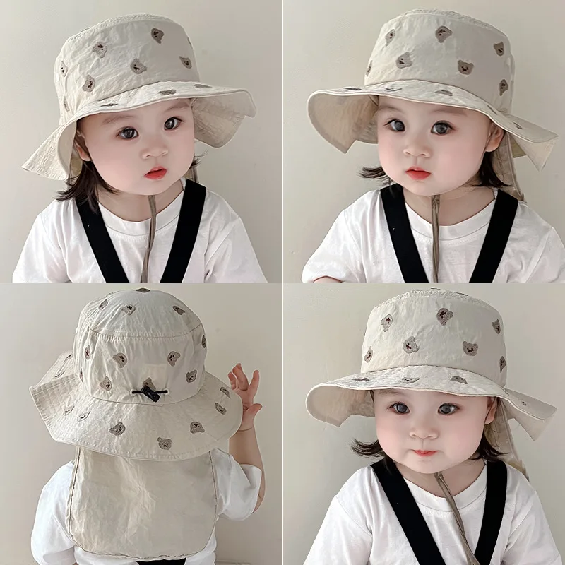 Comprar Sombrero fino de verano para niños pequeños, sombrilla de moda coreana con dibujos animados, protege el cuello, sombrero de cubo para bebé de 1 a 4 años, sombrero impermeable suave y transpirable
