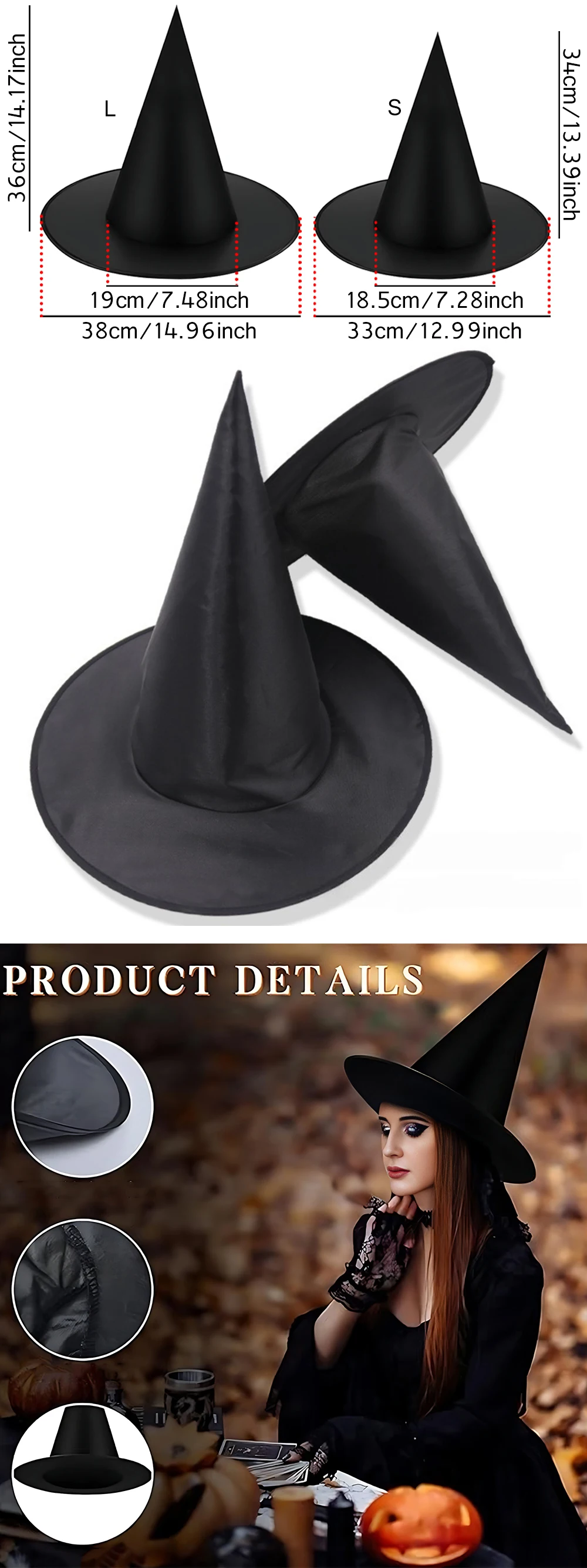 Comprar Sombrero de Halloween bruja mago sombrero negro S/L 2 tamaños disponibles decoración del patio del hogar mascarada disfraz de Halloween accesorio de fiesta ZYF