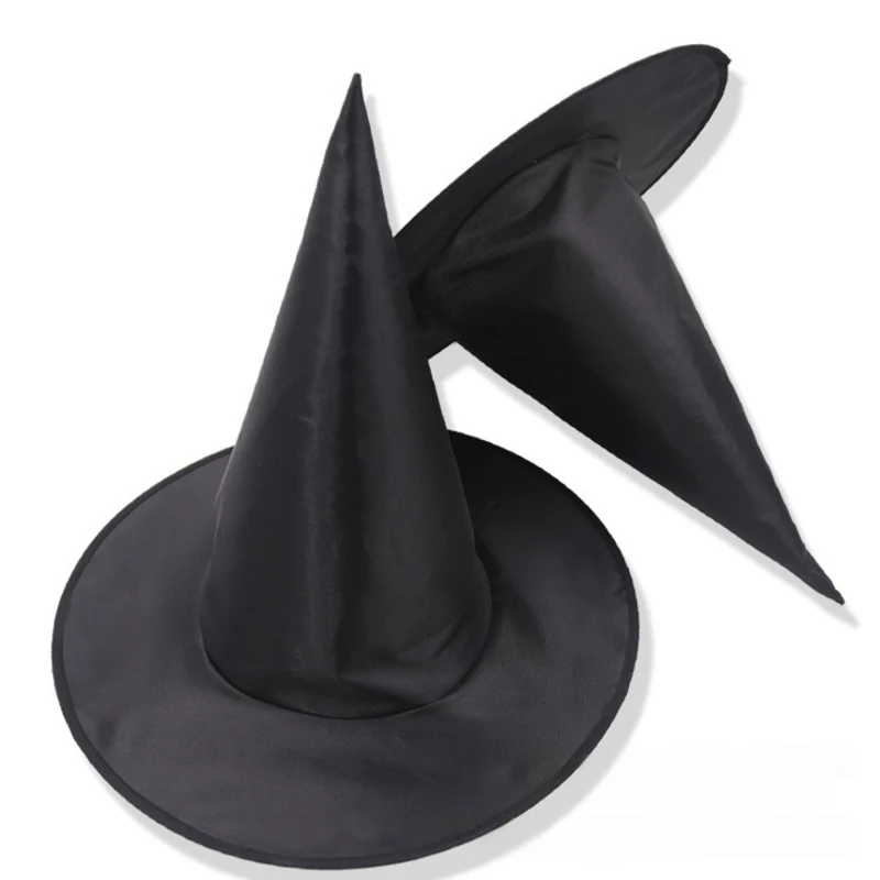 Comprar Sombrero de Halloween bruja mago sombrero negro S/L 2 tamaños disponibles decoración del patio del hogar mascarada disfraz de Halloween accesorio de fiesta ZYF