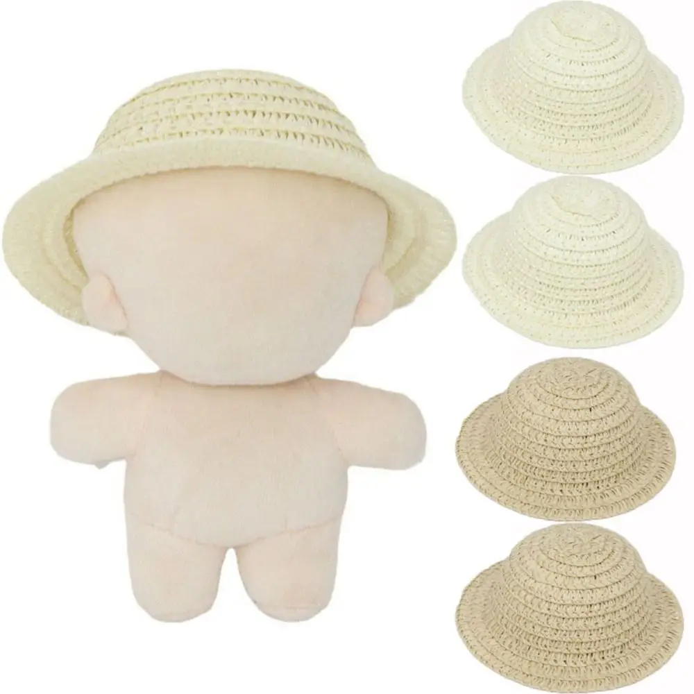 Comprar Sombrero de paja hecho a mano para muñecas, accesorios de algodón para casa de muñecas, sombreros tejidos a mano, borla en miniatura, 10CM