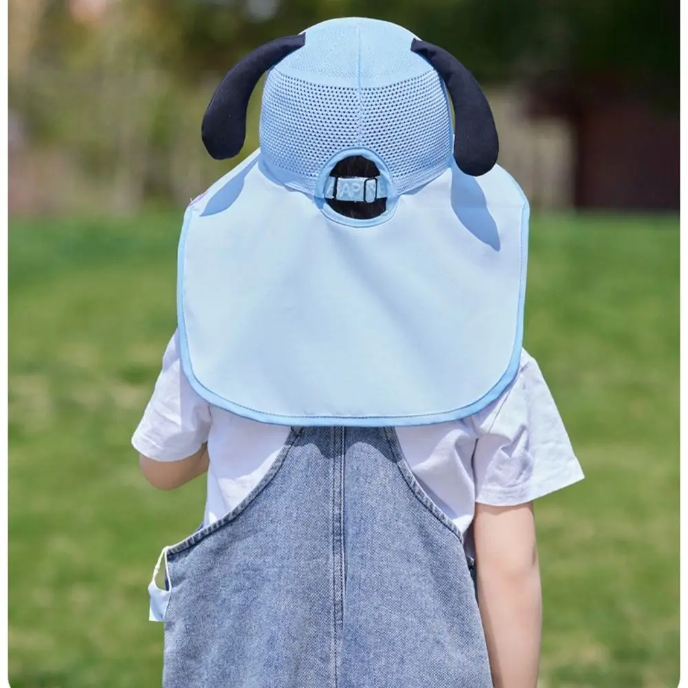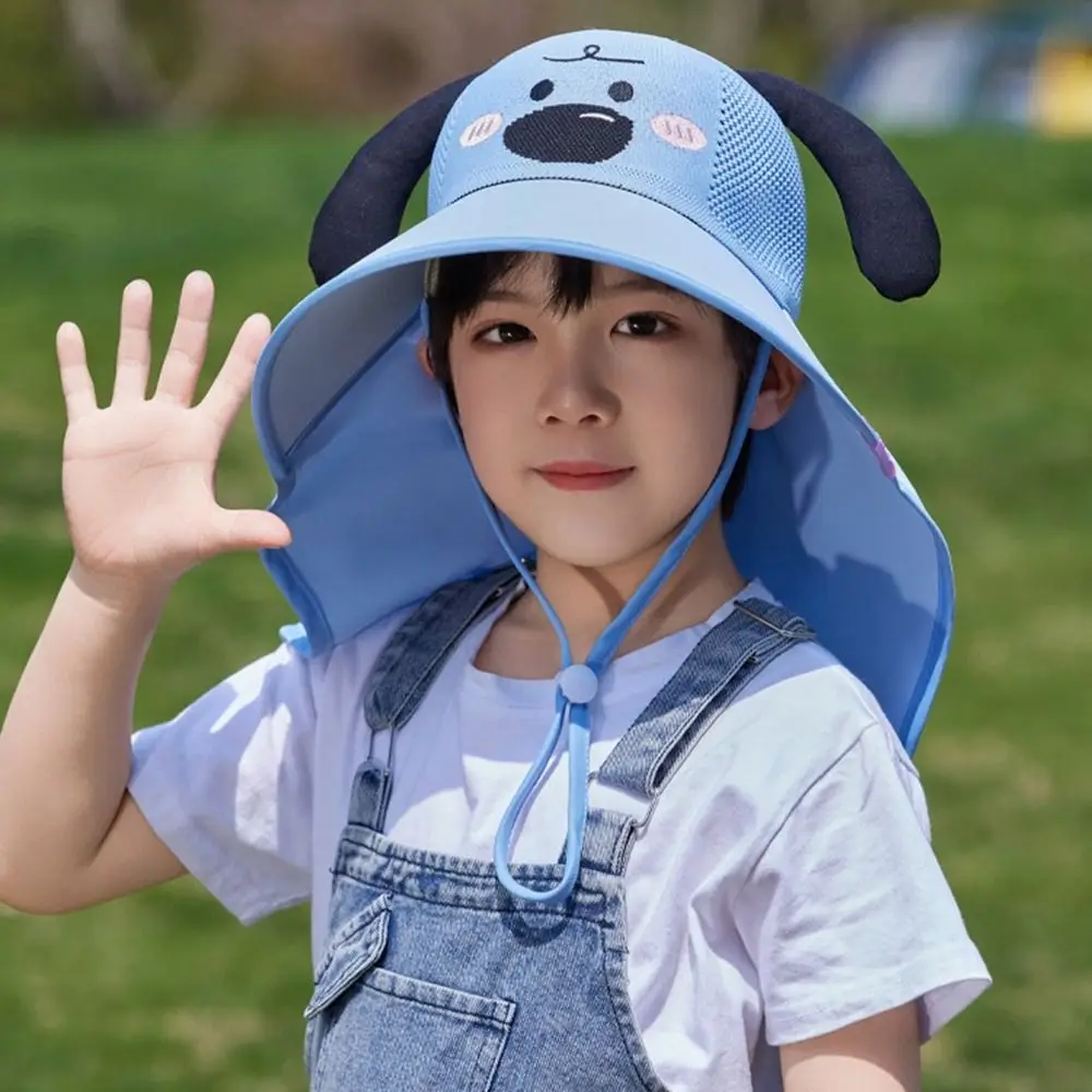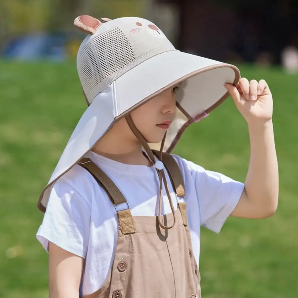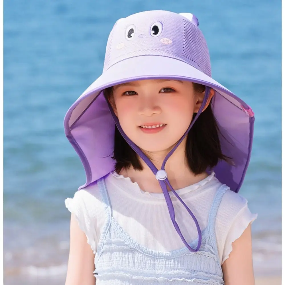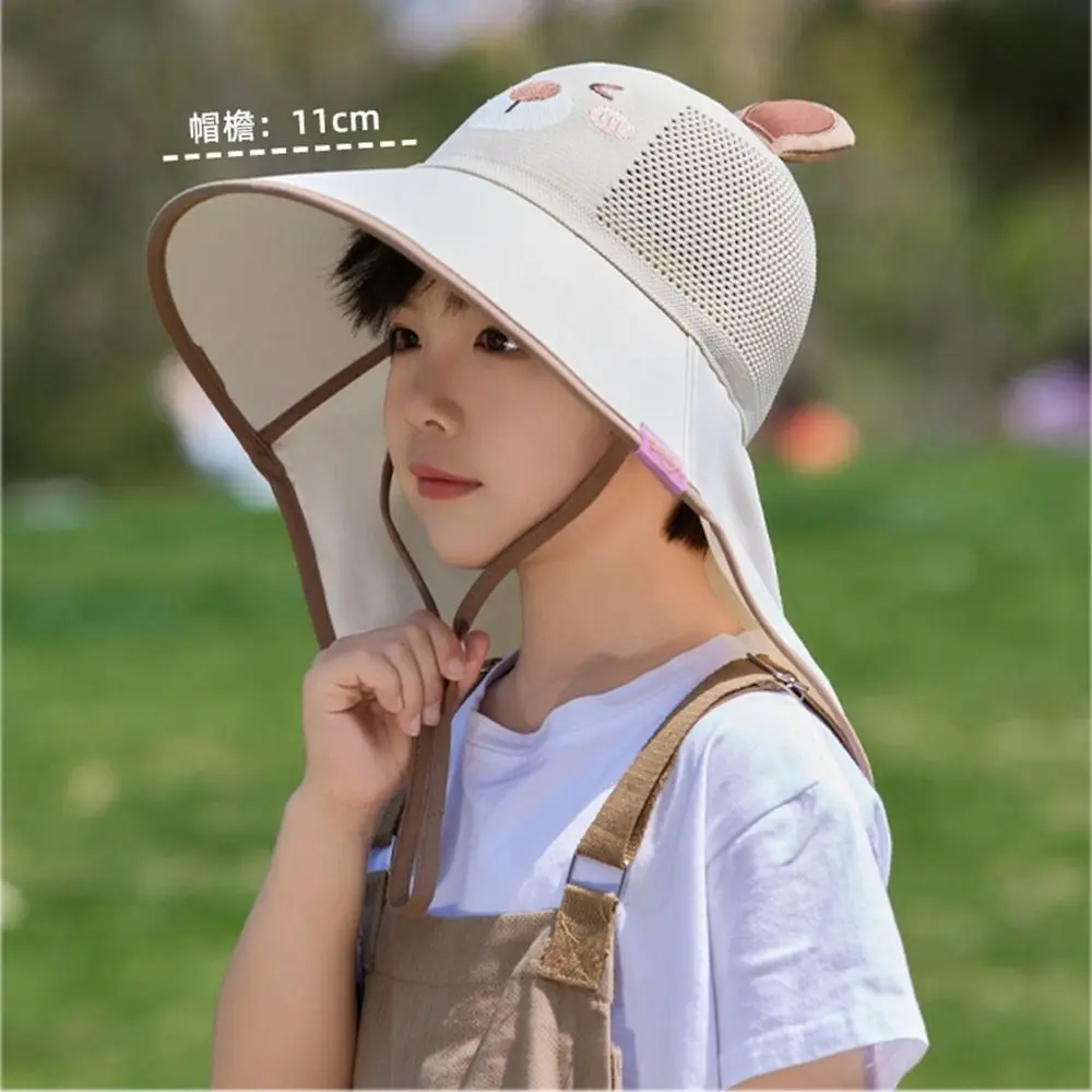 Comprar Sombrero de pescador de ala grande para bebé, chal extendido de dibujos animados, sombrero de protección solar para niños, gorro de cubo, cubierta para el cuello, gorra de playa para niños al aire libre