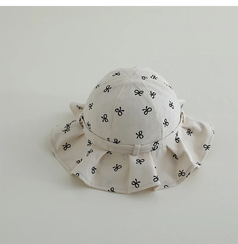 Comprar Sombrero de pescador coreano para bebés y niñas, gorro de lavabo con estampado de encaje y lazo, gorro de algodón transpirable para niños, sombrilla para exteriores, sombrero para el sol