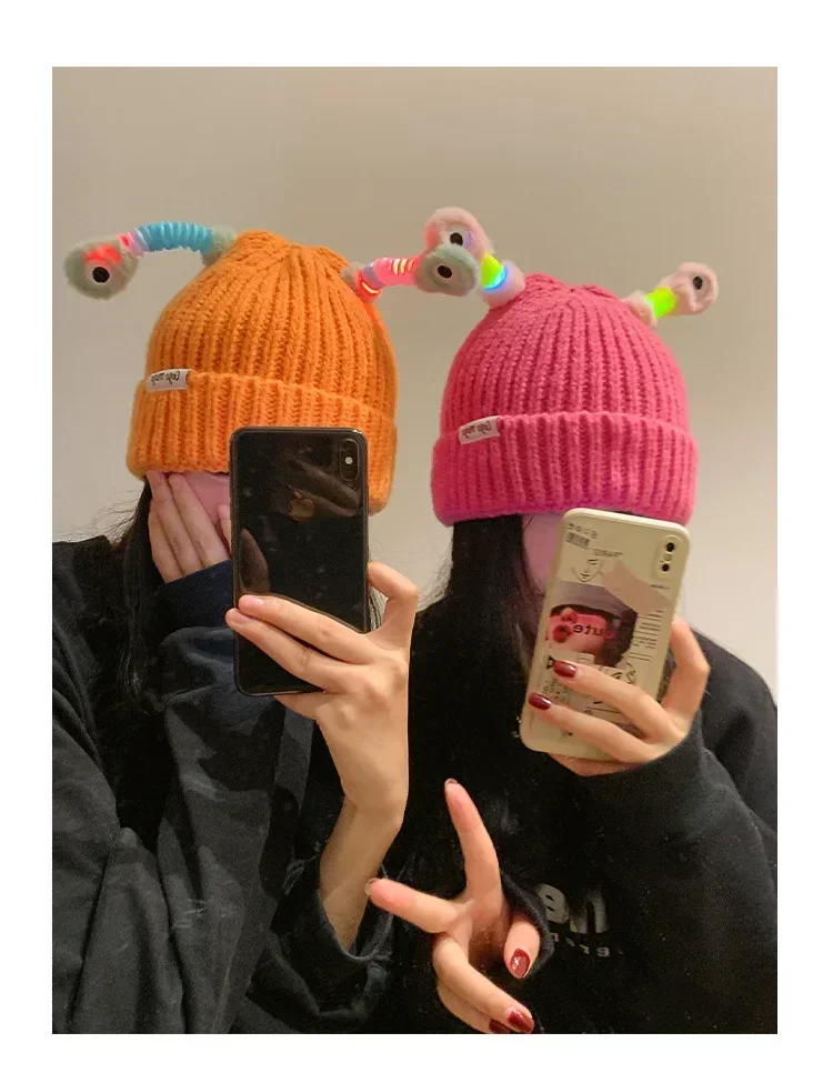 Gorro de punto pequeño brillante para padres e hijos de invierno, divertido gorro hecho a mano con ojo grande que se puede estirar
