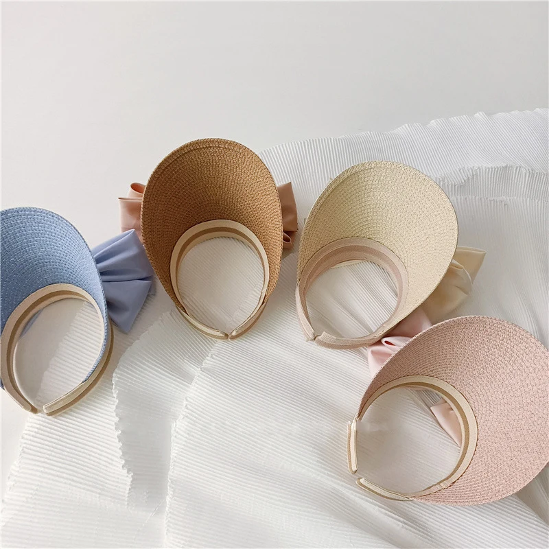 Comprar Sombrero de Sol de paja con lazo grande para la madre, sombrero de playa de moda, INS, Top vacío, Coreano