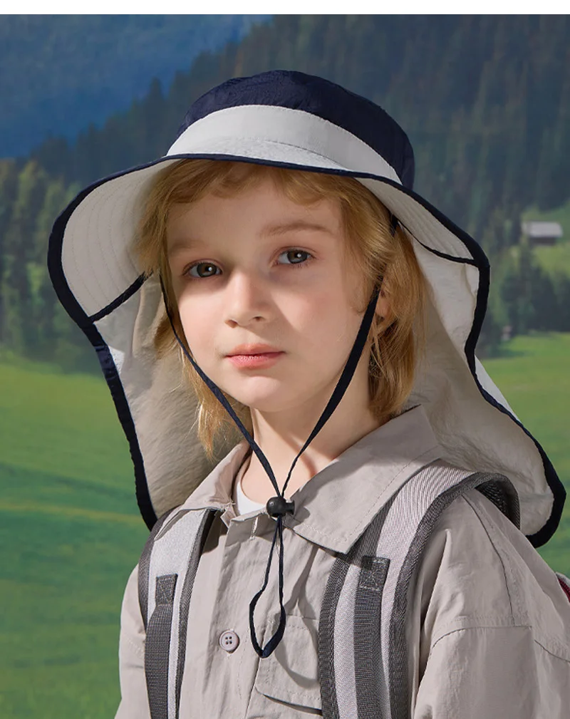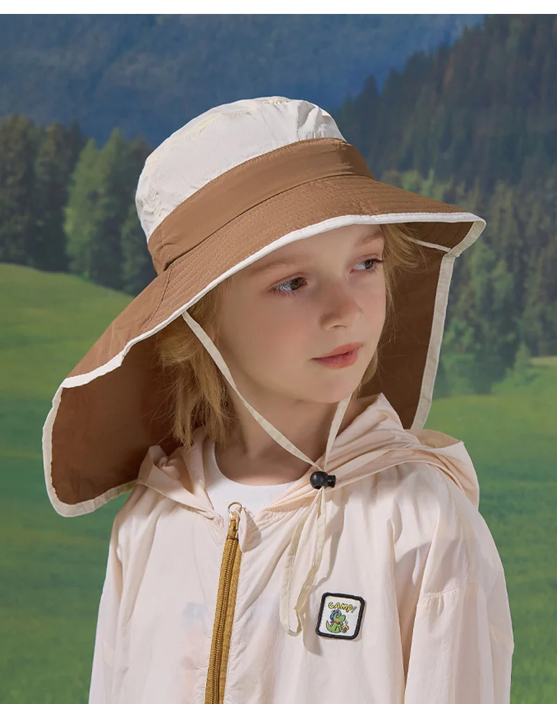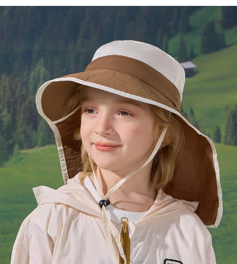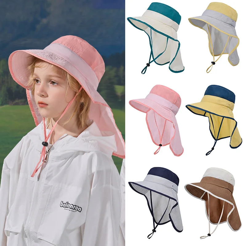 Sombrero de verano para niños y niñas, chal de ala grande de Color empalmado, sombreros para el sol, protección para el cuello al aire libre, gorra de pescador, accesorio de playa