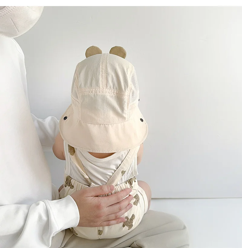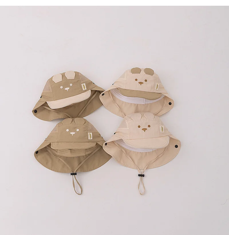 Sombrero de verano para niños, protección del cuello, gorra de pescador, bonitos sombreros de dibujos animados para niños pequeños, protección Uv, sombreros de cubo plegables para bebés al aire libre