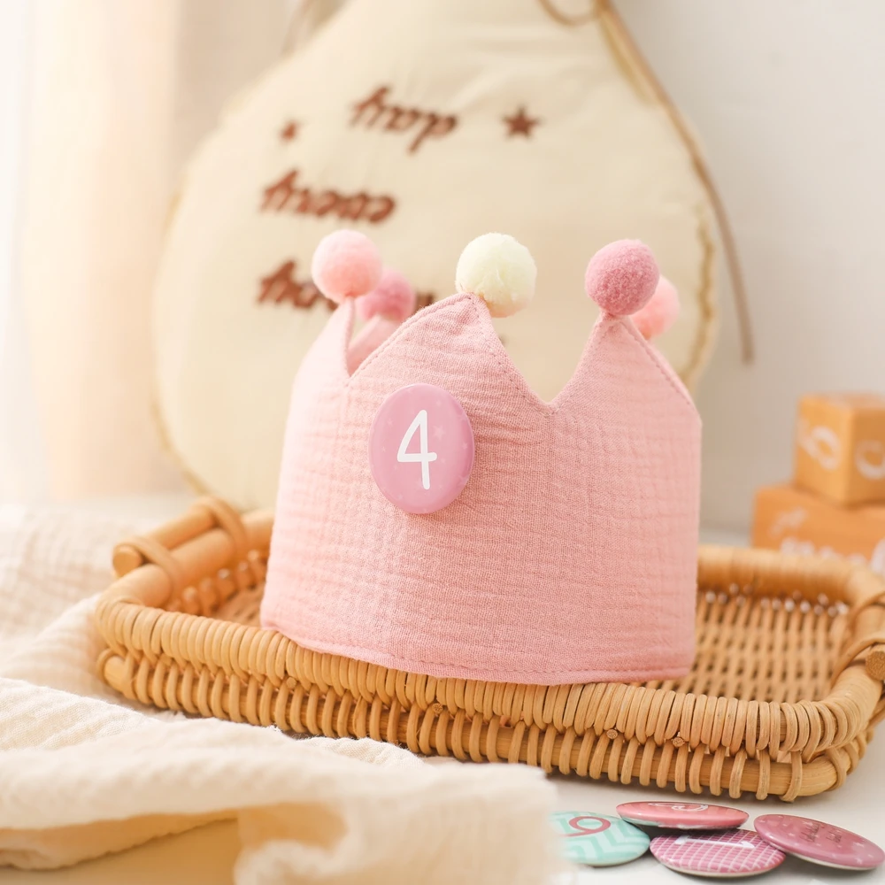 Sombreros de corona para fiesta de cumpleaños de bebé, diadema con bola de lana, sombrero para niños, accesorios para fiesta de bebé, accesorio de fotografía de 0 a 9 años, regalo de cumpleaños