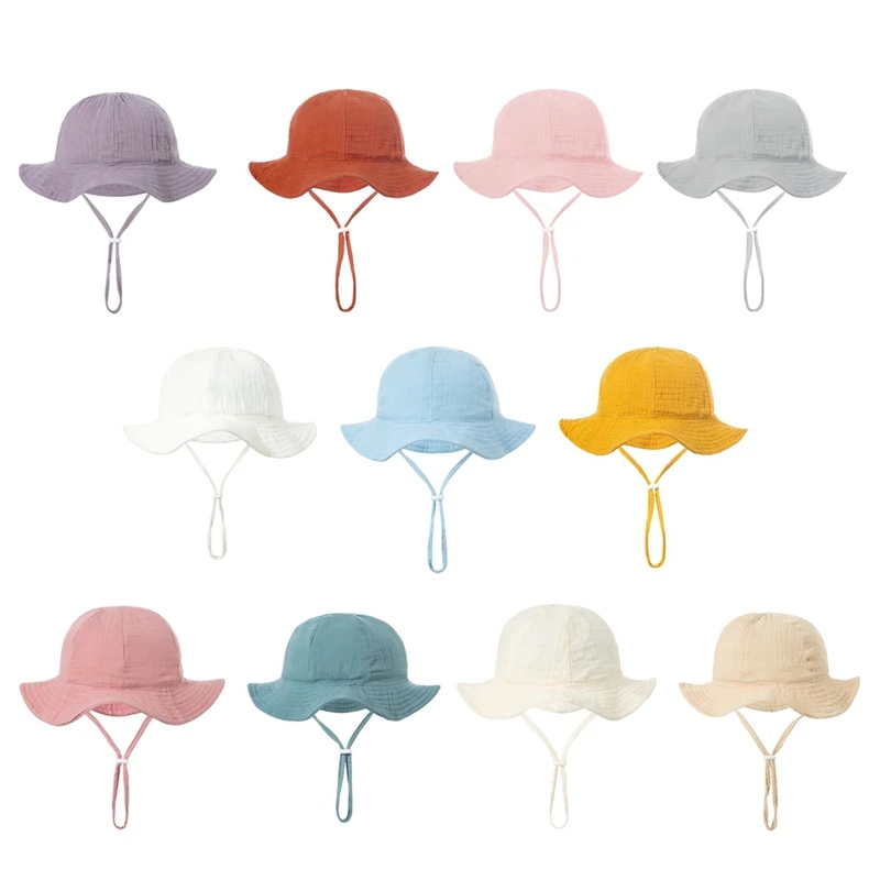 Sombreros de cubo de algodón para bebé, gorras de exterior con protección solar para niños y niñas, sombrero Panamá sólido, sombrero de pesca de playa Unisex para 0-12 meses