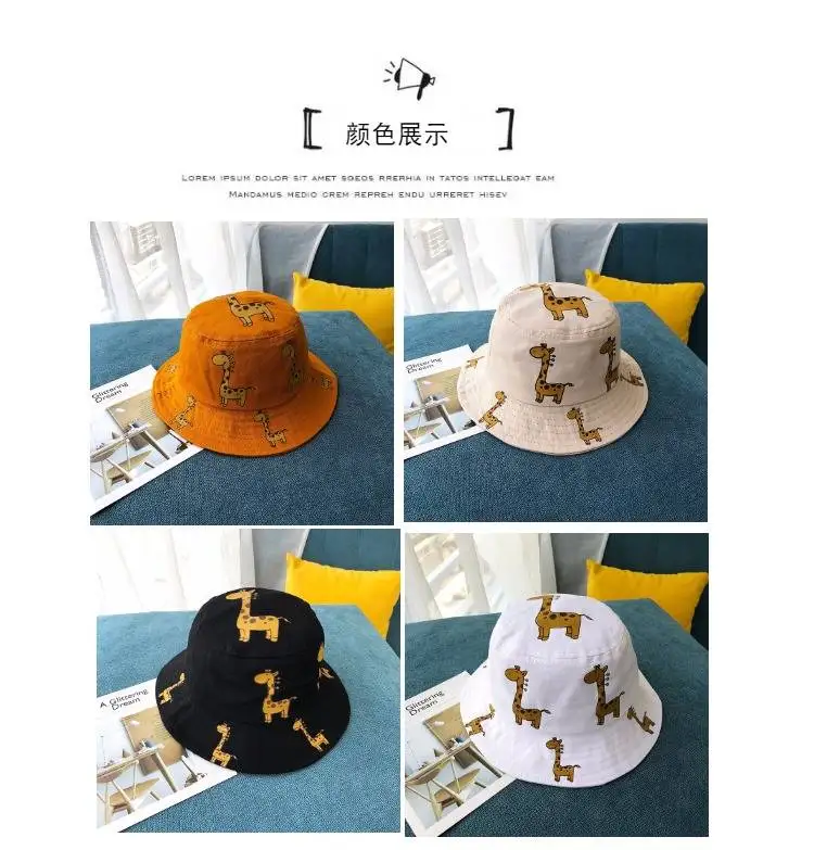 Children's Bucket Hats Cartoon giraffe Sun Hat Girls Boys Outdoor Beach Hat