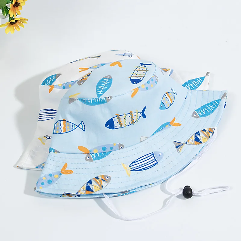 Comprar Sombreros de Sol para bebé, niño y niña, sombreros de cubo de dibujos animados coreanos, gorras con cuerda a prueba de viento, accesorios para niños
