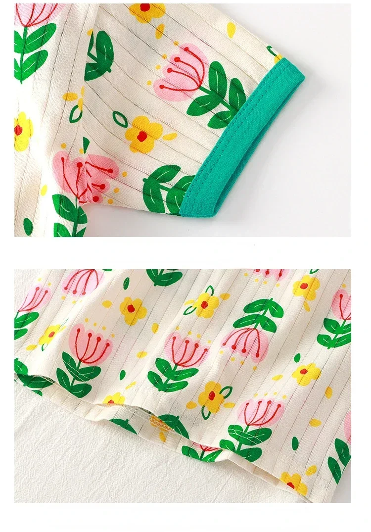 Somenie 2 conjuntos de ropa corta de verano para niñas, camiseta infantil de algodón con flores y pantalones cortos, pijamas de 2 piezas 12M-24M-3Y-5YN -8Y, ropa de casa