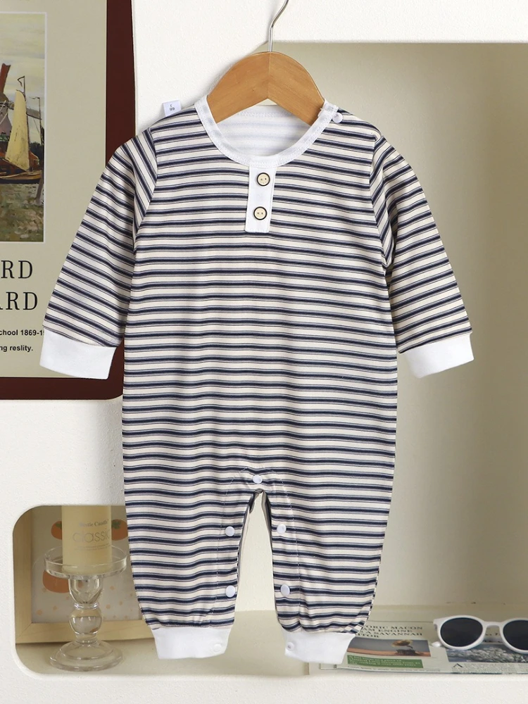 Somenie, mameluco Unisex de manga larga para bebé, traje de mono a rayas con cuello redondo para niño, ropa para niña, traje infantil de tendencia 1-3-6-9-12-24M