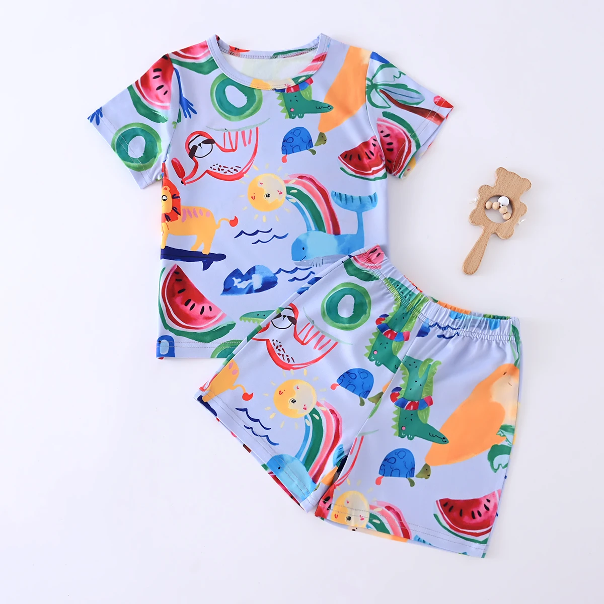 Somenie, nuevo conjunto de ropa de verano para niños, Top de manga corta con estampado de animales bonitos + Pantalones cortos, ropa de casa para bebés de 2 piezas de 3-4-5-6 años