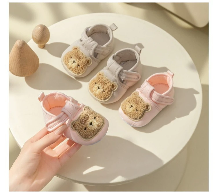 Somenie Zapatos de bebé para primavera y otoño, suela blanda, antideslizantes, con lindo oso de dibujos animados para bebés, niños y niñas