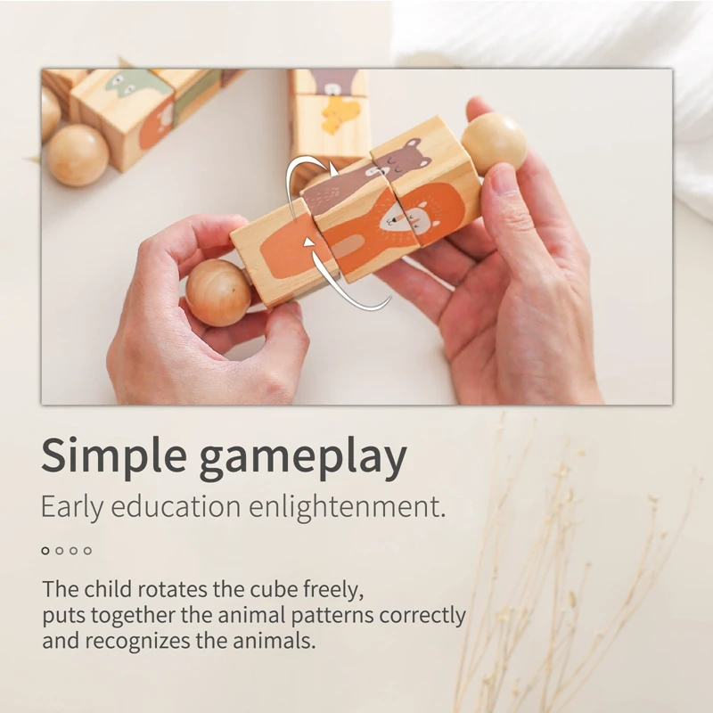 Comprar Sonajero de animales giratorio de madera para bebé, mordedor de agarre para recién nacido, rompecabezas a juego, juguete Montessori, regalo para niños, 1 unidad