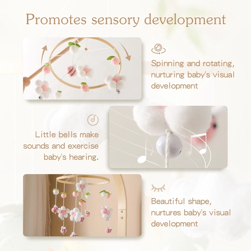 Campana para cuna de bebé, sonajero de juguete de 0 a 12 meses, móvil de madera, cama de abeja de dibujos animados, campana colgante, soporte para juguetes, soporte para cuna infantil, regalos