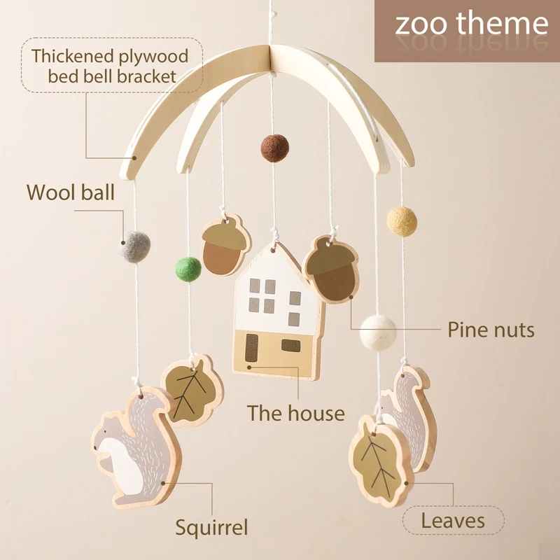 Comprar Sonajero de madera para bebé de 0 a 12 meses, colgante de Animal para recién nacido, campana de cama colgante, soporte de juguetes para cuna infantil, regalos de juguete, 1 unidad