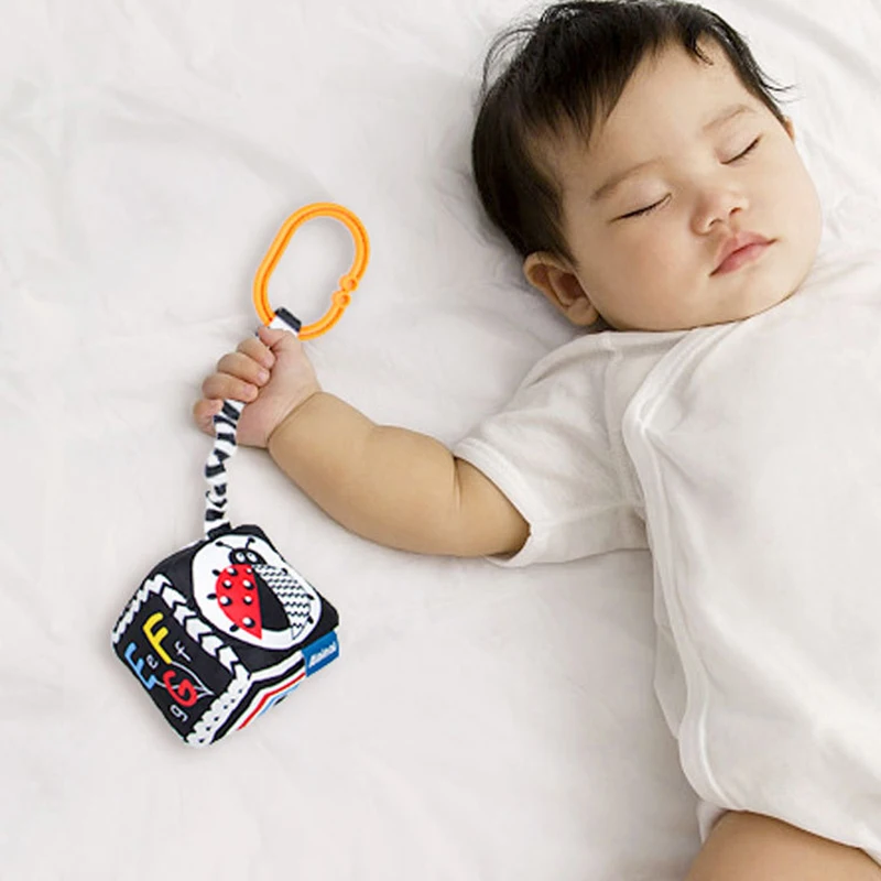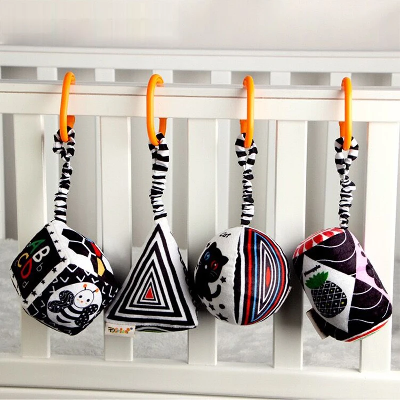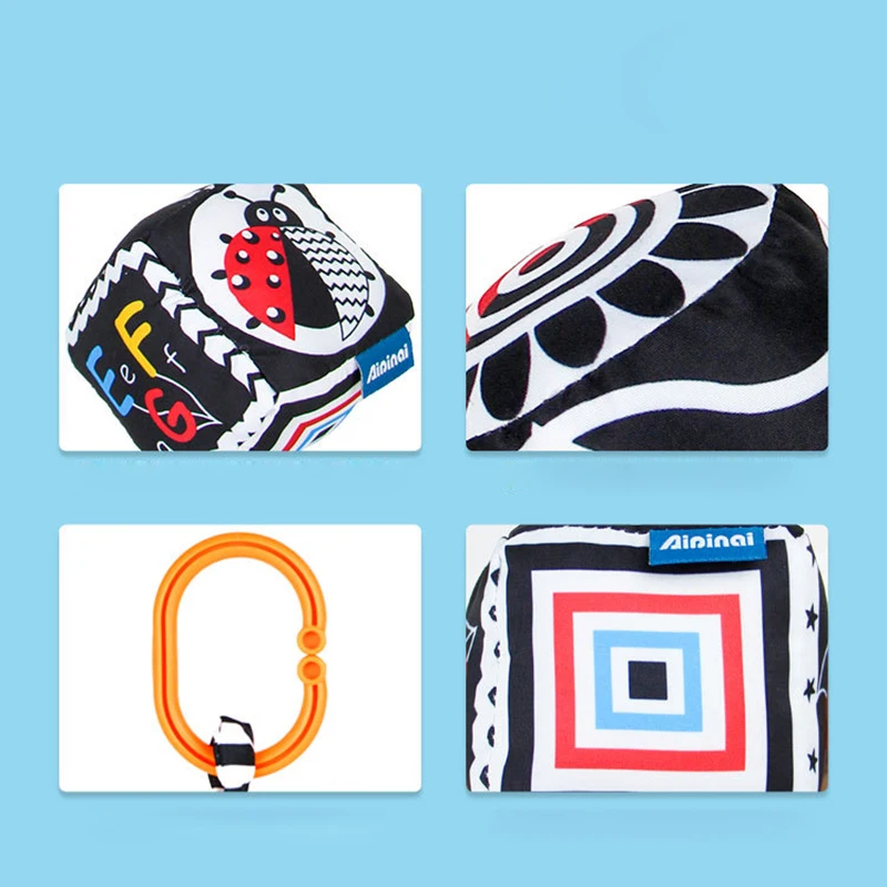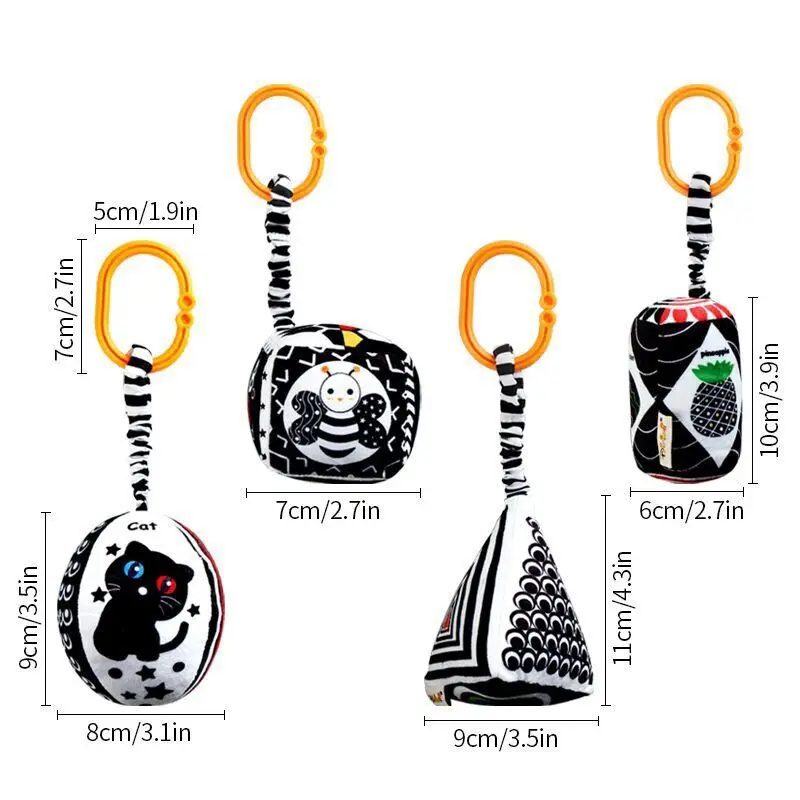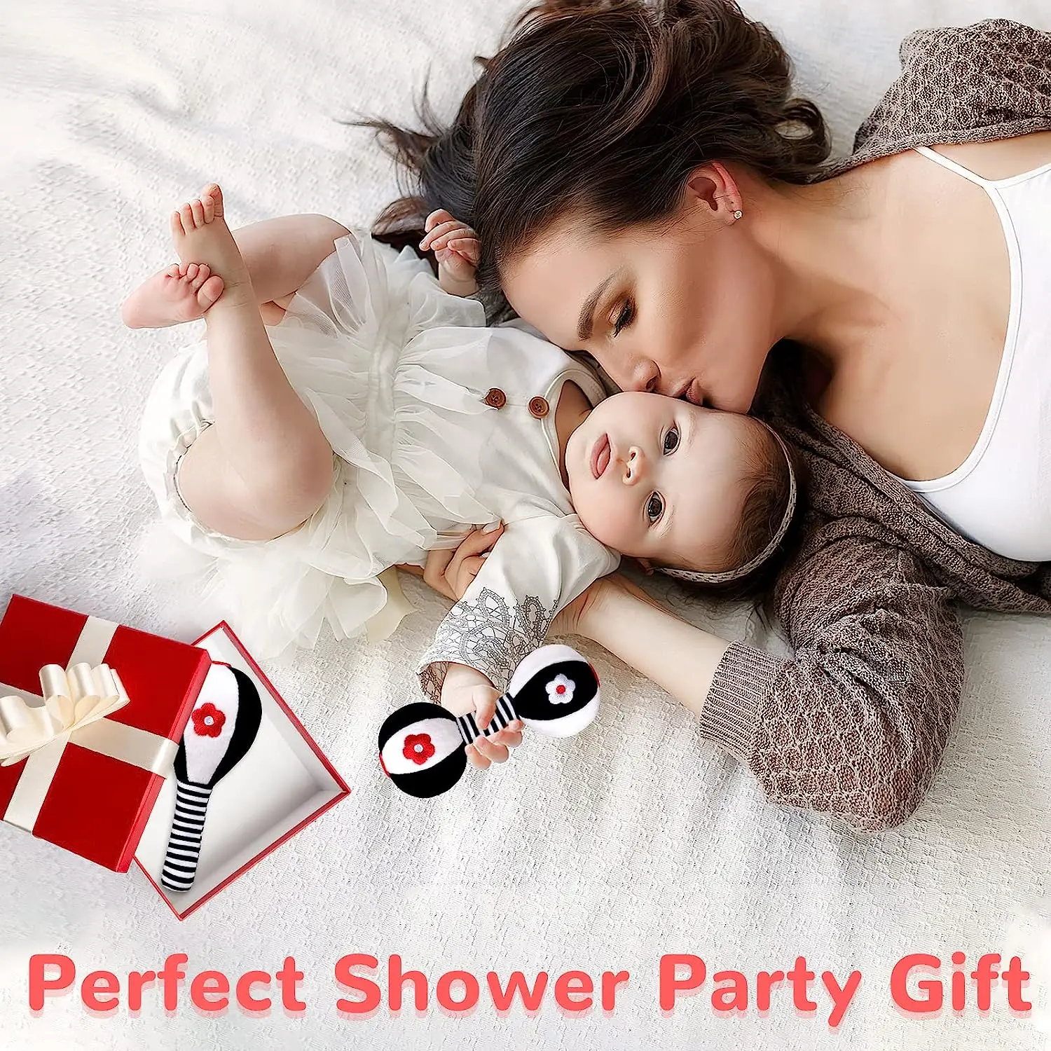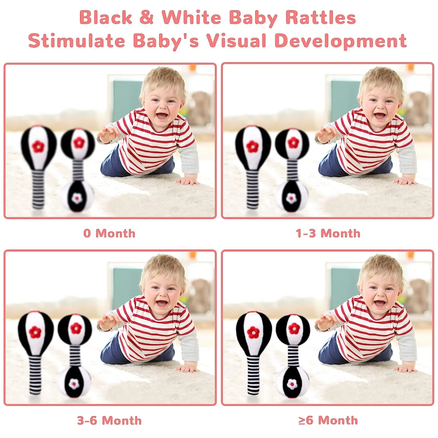 Baby Plush Rattle Toy Soft Stuffed Animal Rattle with Sound Black White Shaker Ring Toys Developmental Hand Grip Toys 0 12 Months