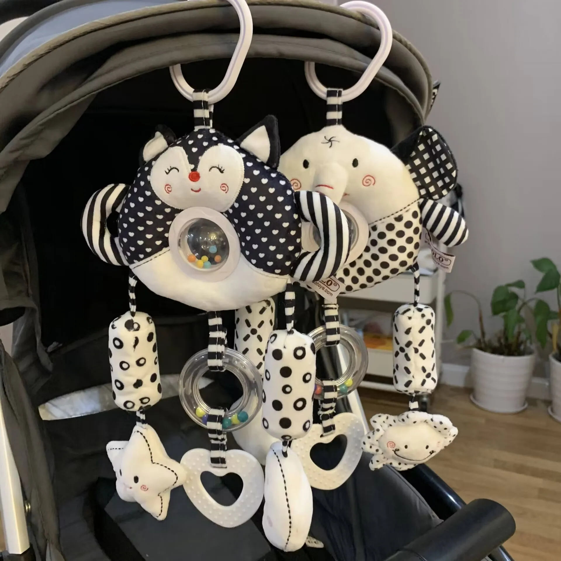 Comprar Sonajero de peluche para bebé, sonajero de peluche suave con sonido, anillo agitador blanco y negro, juguetes de desarrollo con agarre manual de 0 a 12 meses