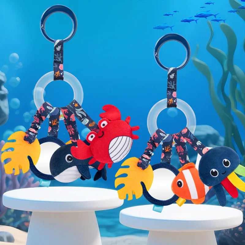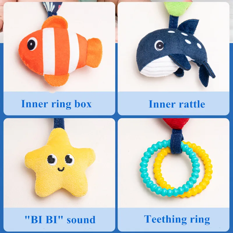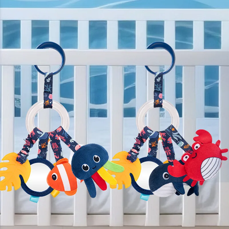Comprar Sonajeros de felpa suave para bebé con campana para cochecito de recién nacido, cascabel de mano para coche, sonajero móvil, juguetes para cuna, muñeco colgante chirriante interactivo