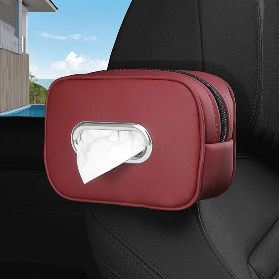 Soporte de caja de pañuelos de cuero de primera calidad para coche, ajuste Universal para consola, reposabrazos, visera y asiento trasero, funda de pañuelos con correa fija antideslizante