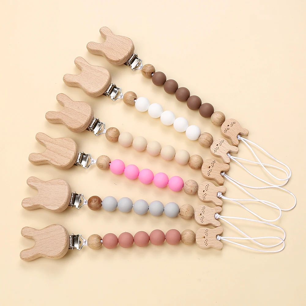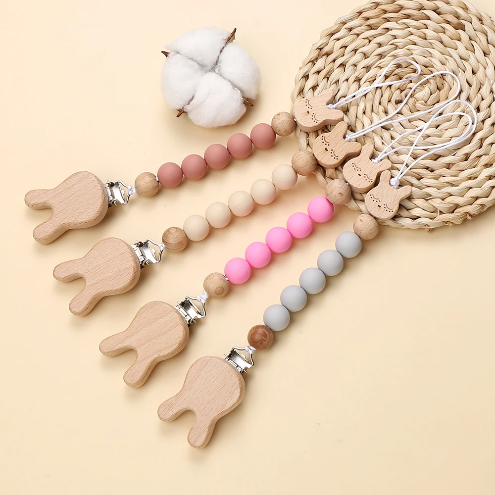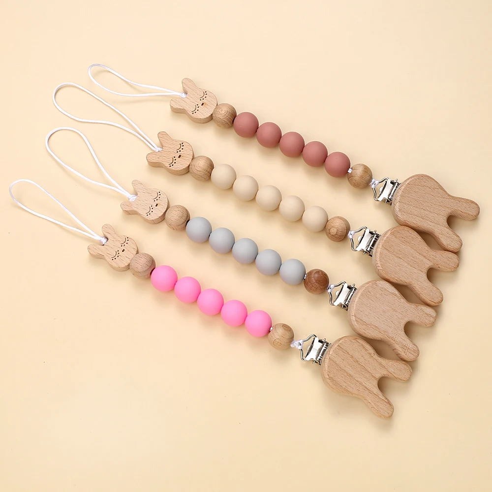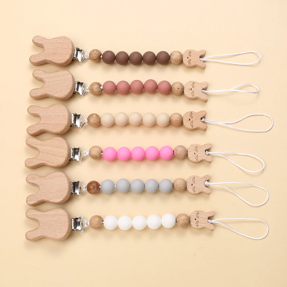Comprar Soporte para chupete de conejo de madera, Clip personalizado con nombre, mordedor para bebé, cadena para pezones, cuidado de la dentición de silicona, regalo de ducha de cumpleaños para niños