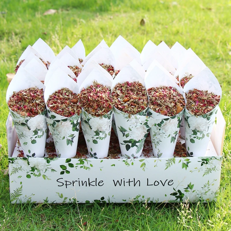 Soporte para conos de confeti de boda, decoración de boda, restos de flores, bandeja de papel rústica para boda, soporte para conos de papel de confeti