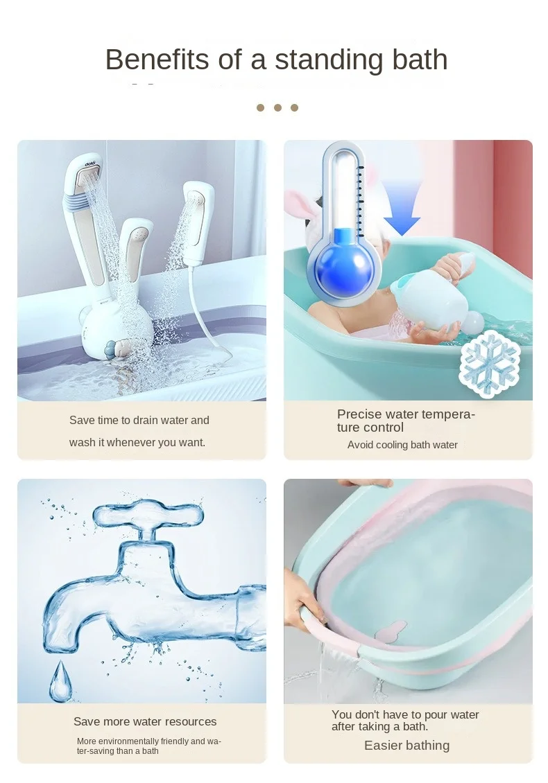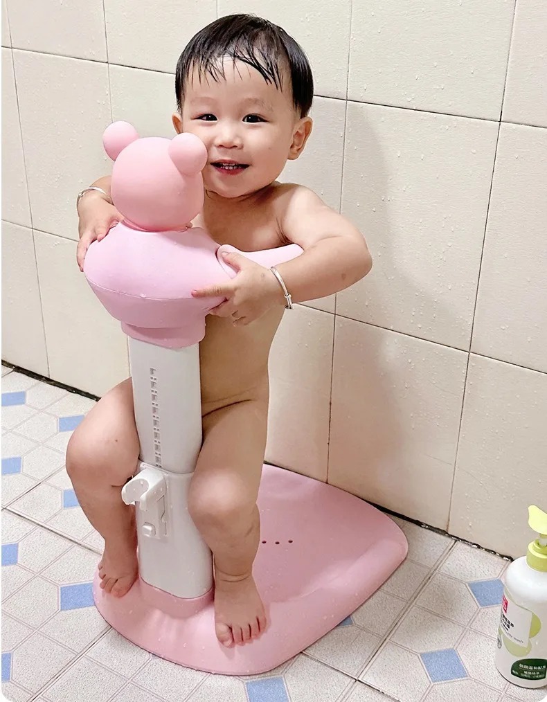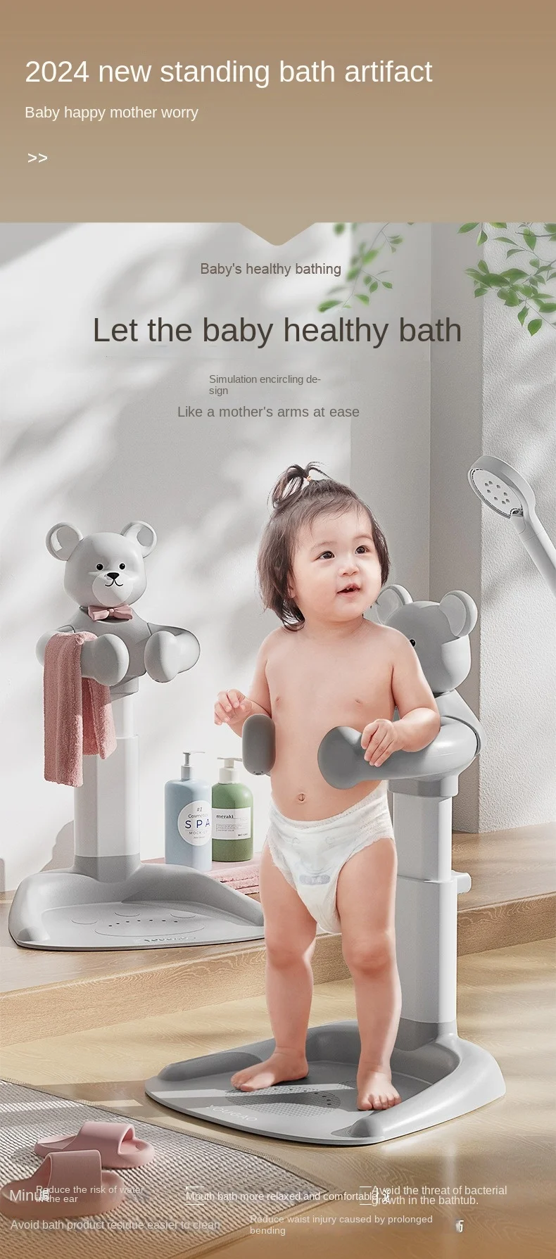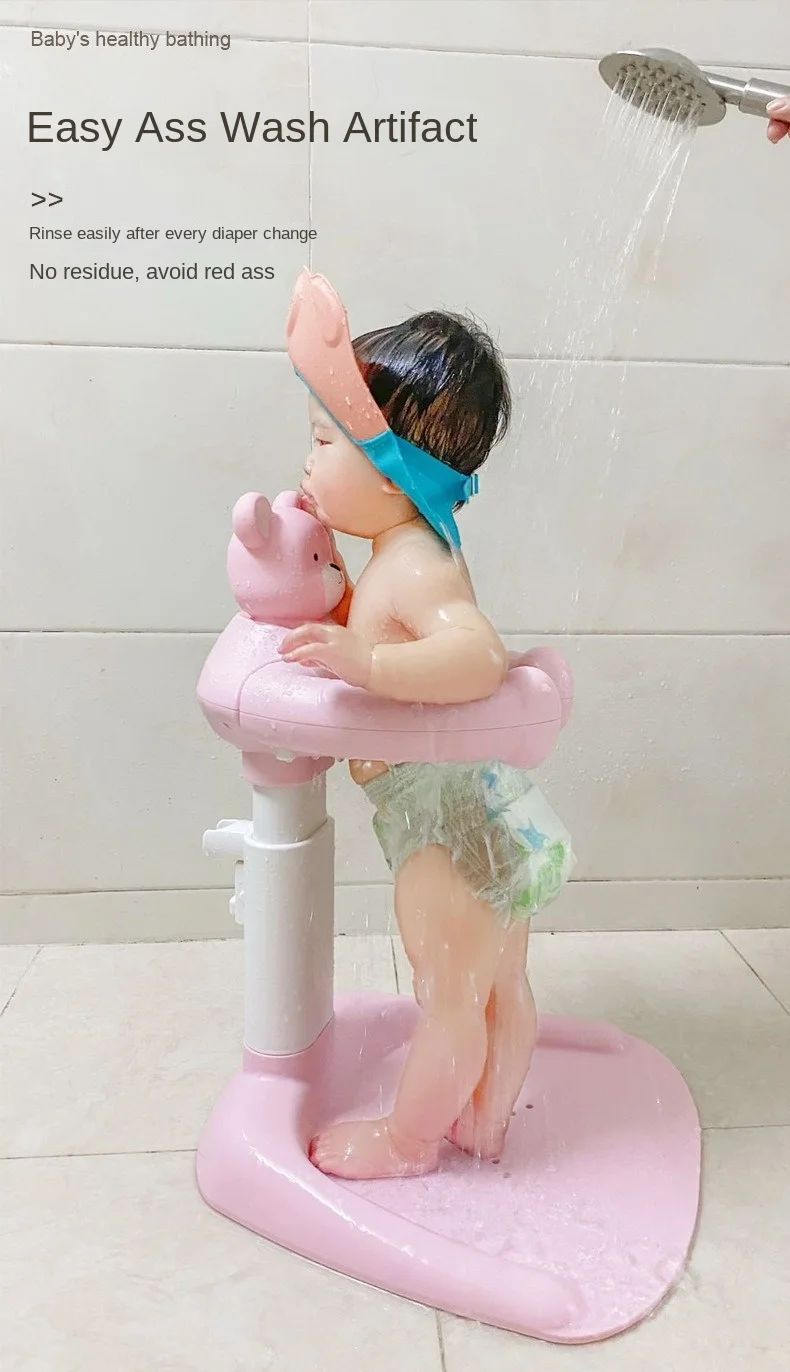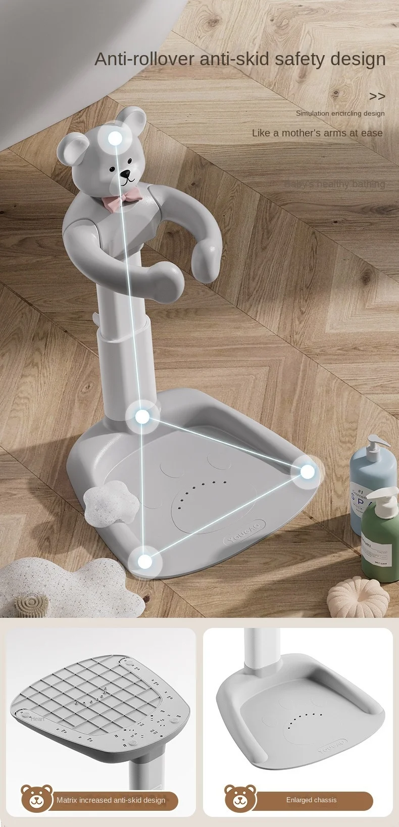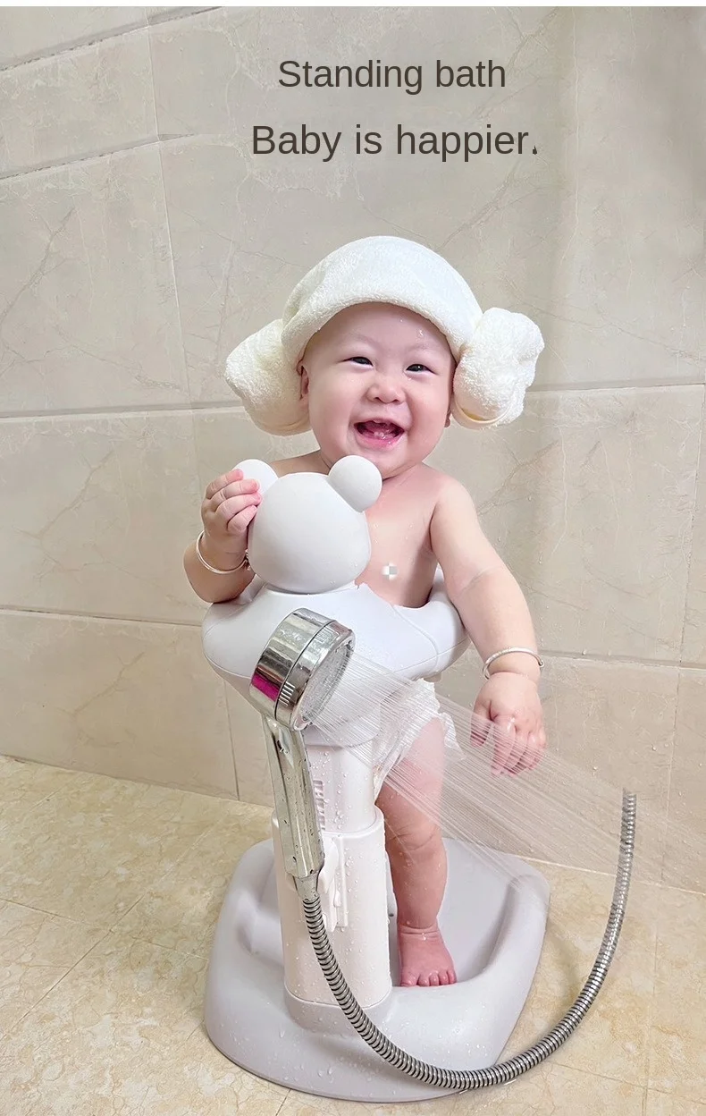 Soporte de ducha de pie para bebé con soportes dobles, instalación gratuita, ducha ajustable para niños, soporte antideslizante para el hogar