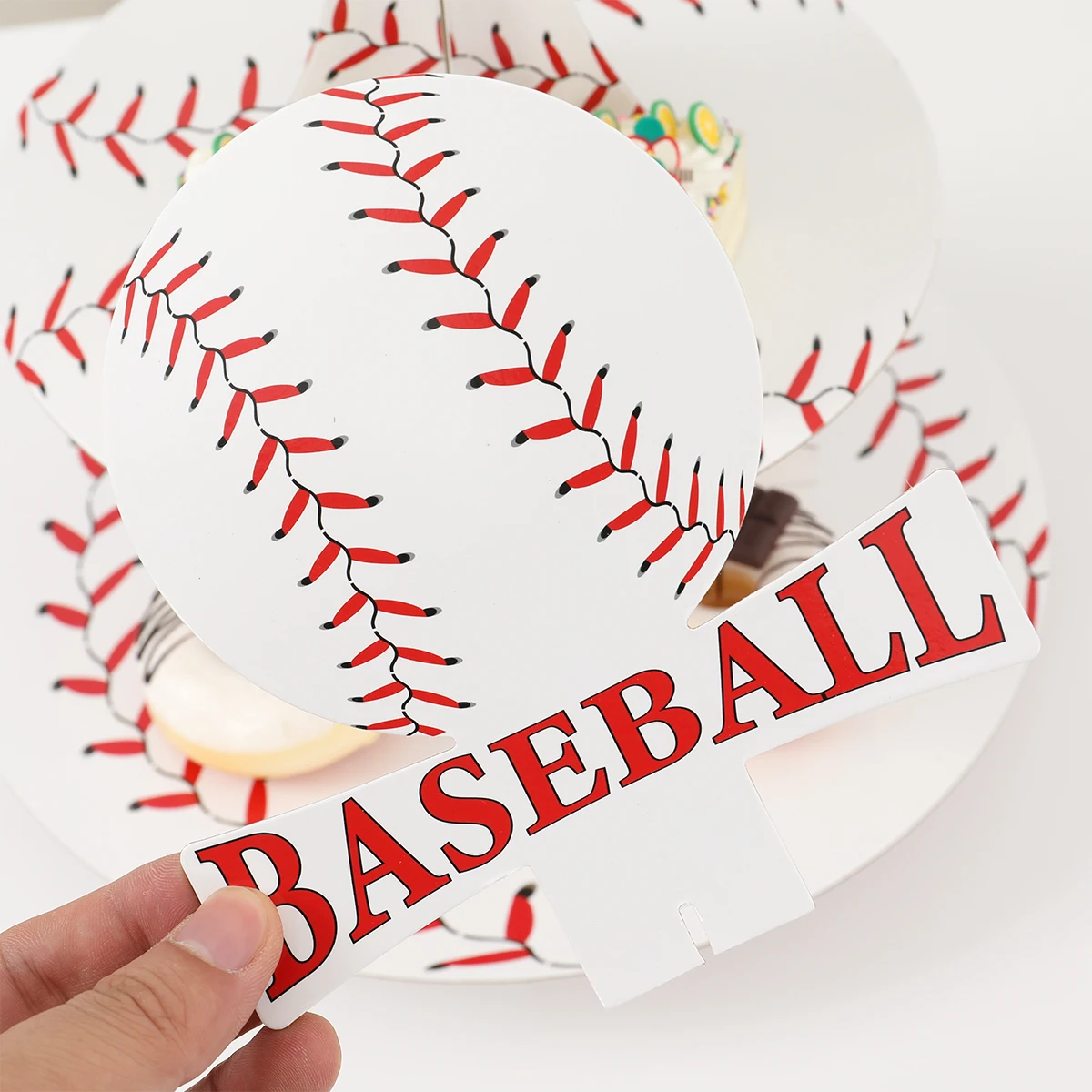 Comprar Soporte para magdalenas de fiesta de béisbol de 3 niveles, decoraciones, línea de bola roja, soporte para magdalenas de cumpleaños, decoración, suministros para fiesta de cumpleaños y Baby Shower