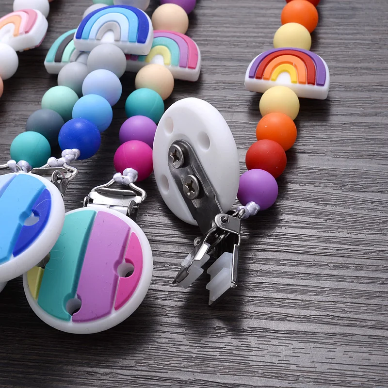 Soporte para pezones de bebé de silicona sin BPA, Clip para mordedor infantil, cuentas, cadena de chupete, juguetes para masticar, regalos, cadena para chupete