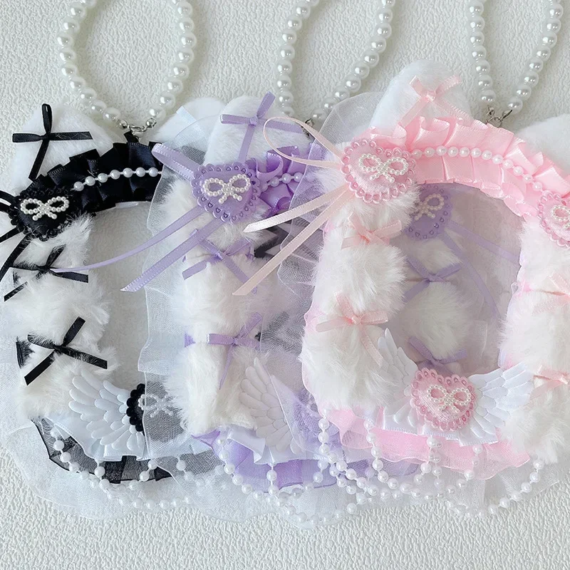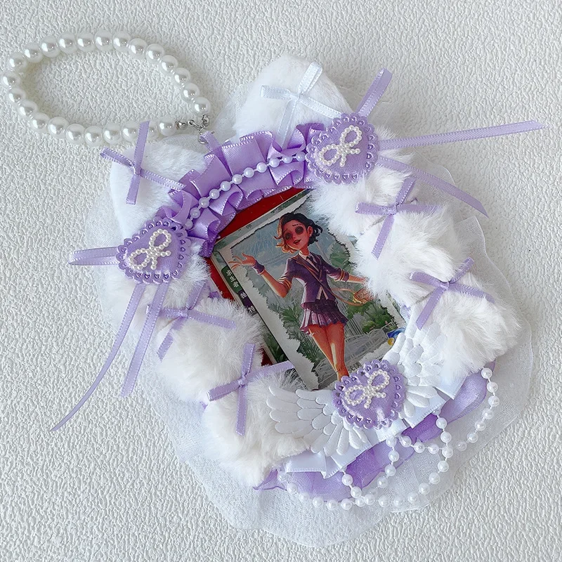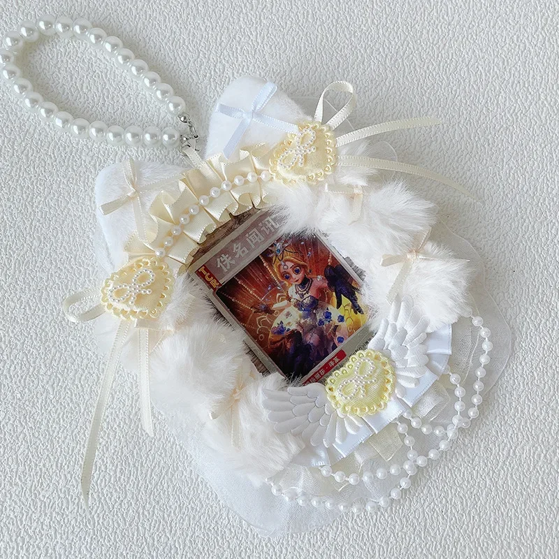 Comprar Soporte para sesión fotográfica Kpop, moda coreana peluda, cargador superior de encaje, lazo de encaje dulce, funda para tarjeta de foto de identificación de corazón, llavero, Protector para sesión fotográfica