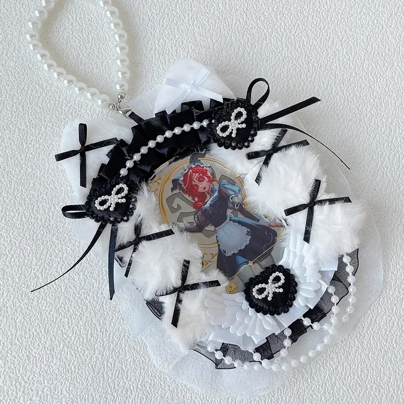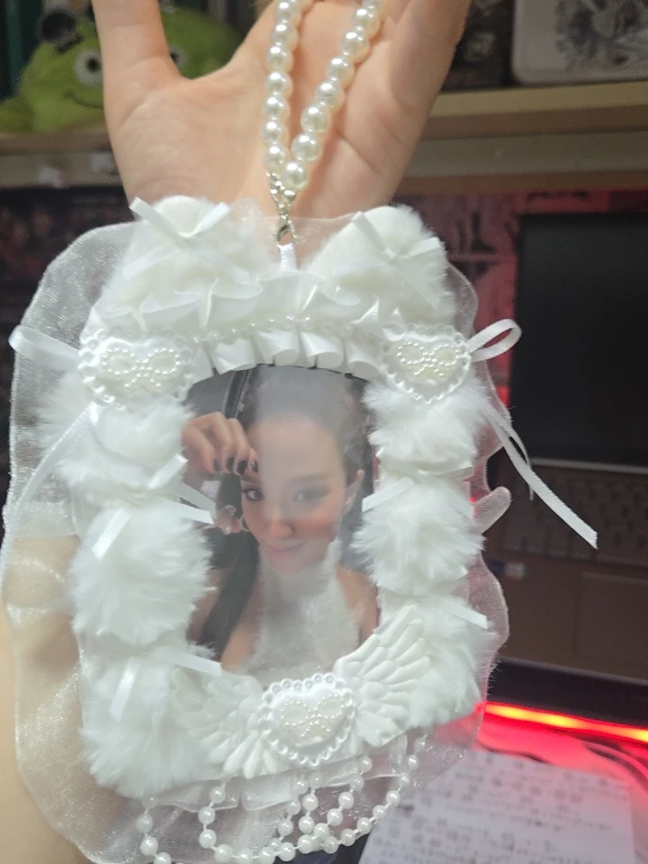 Comprar Soporte para sesión fotográfica Kpop, moda coreana peluda, cargador superior de encaje, lazo de encaje dulce, funda para tarjeta de foto de identificación de corazón, llavero, Protector para sesión fotográfica