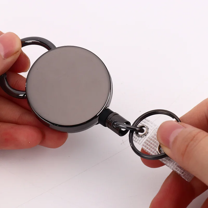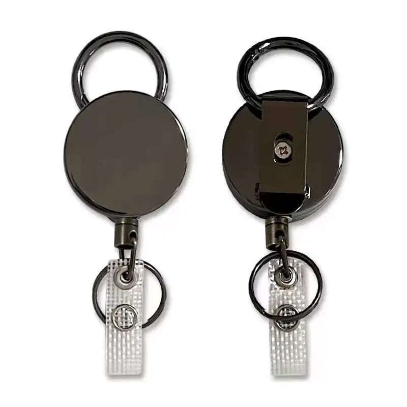 Soportes retráctiles para carrete de insignia de llavero, metal resistente con mosquetón, clip para cinturón y llavero para soporte de nombre de tarjeta de identificación
