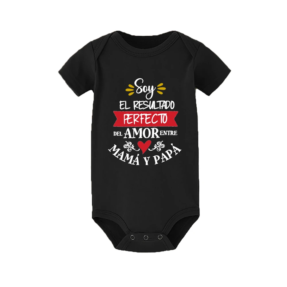 Soy el resultado perfecto del amor entre mamá y papá, mono estampado para bebé, mono divertido para recién nacido, mameluco infantil de manga corta