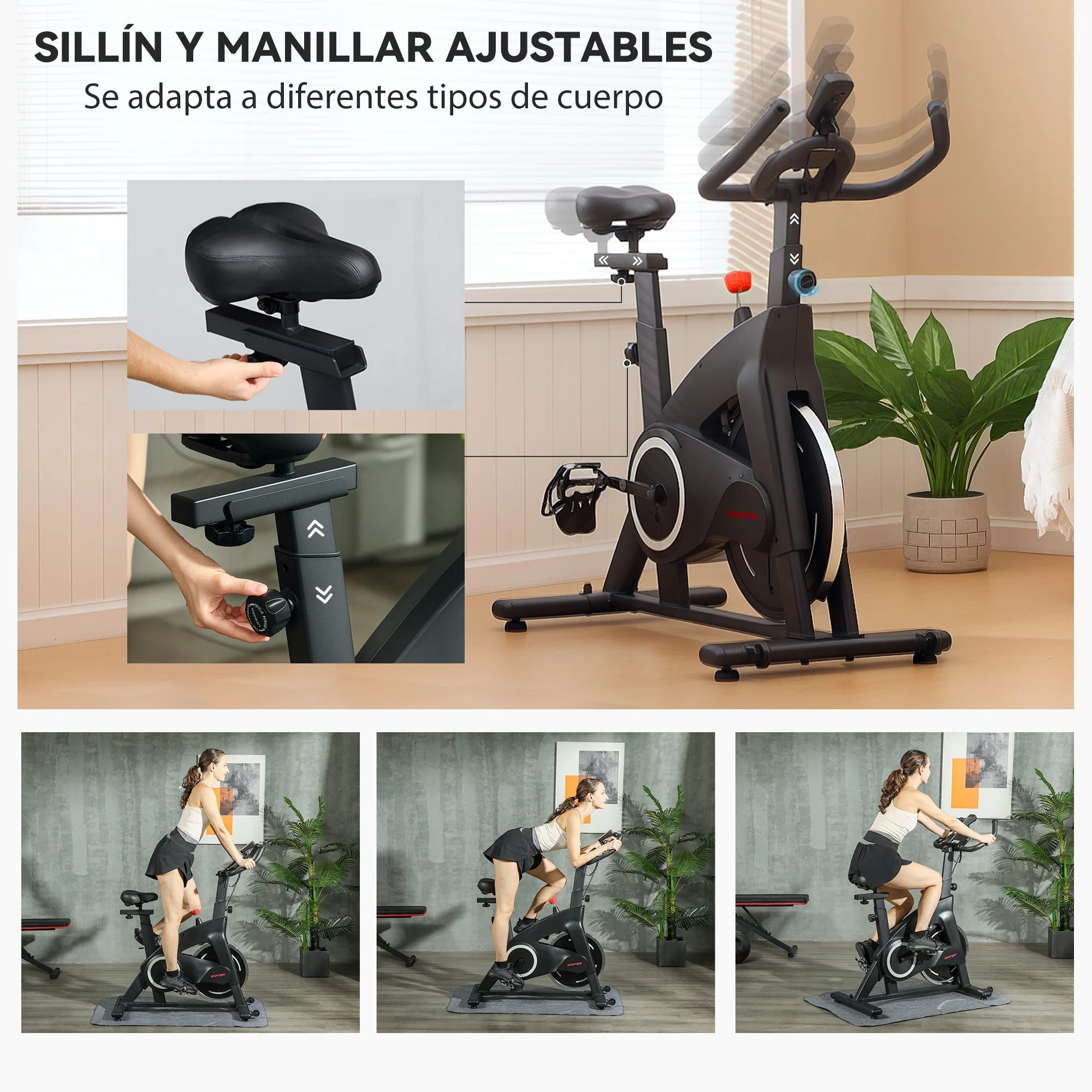 SPORTNOW Bicicleta Estática Bici Estática con Volante de Inercia 15 kg Pantalla LED Ejercicio Silencioso Manillar y Asiento Ajustable Carga 120 kg para Casa Gimnasio Negro