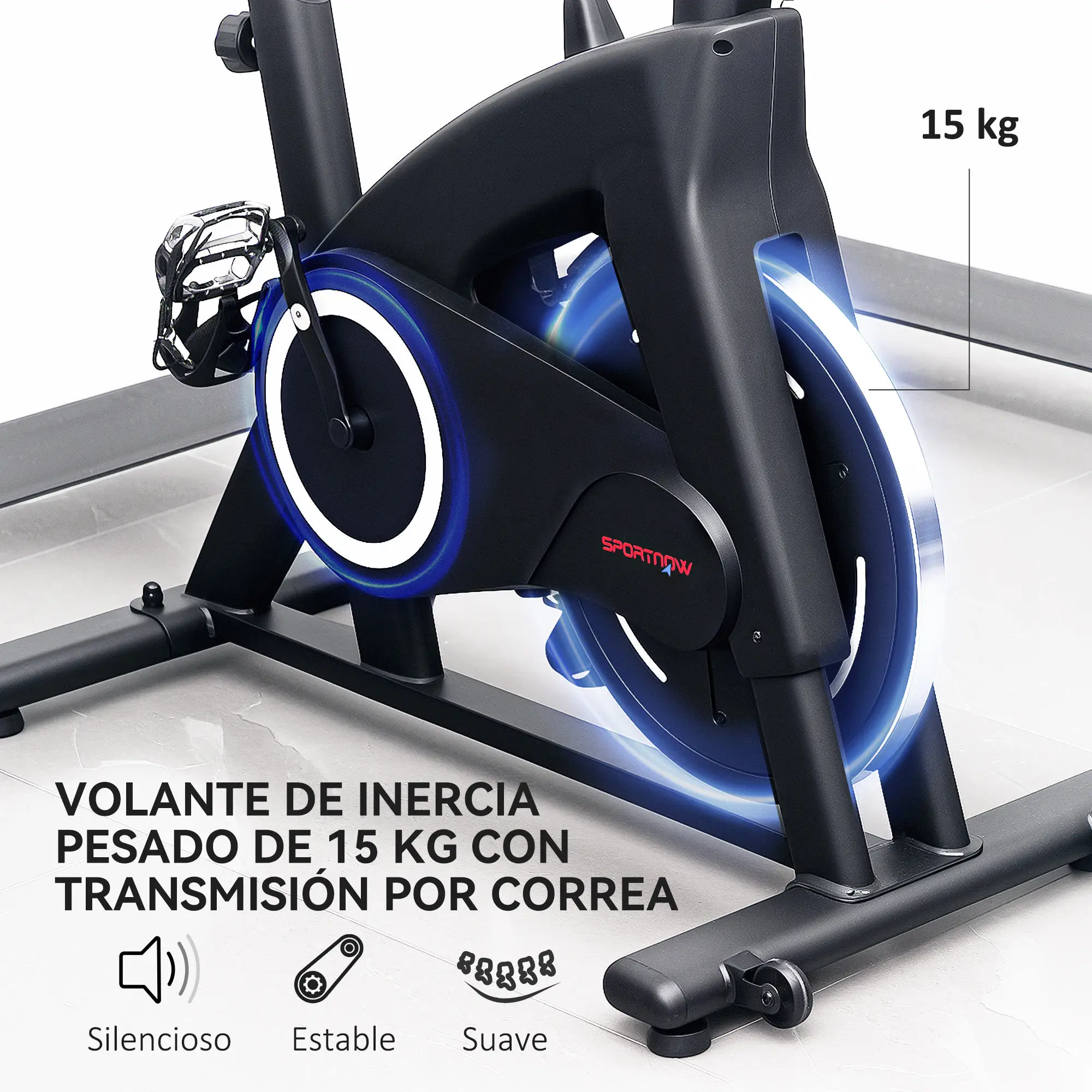 Comprar SPORTNOW Bicicleta Estática Bici Estática con Volante de Inercia 15 kg Pantalla LED Ejercicio Silencioso Manillar y Asiento Ajustable Carga 120 kg para Casa Gimnasio Negro