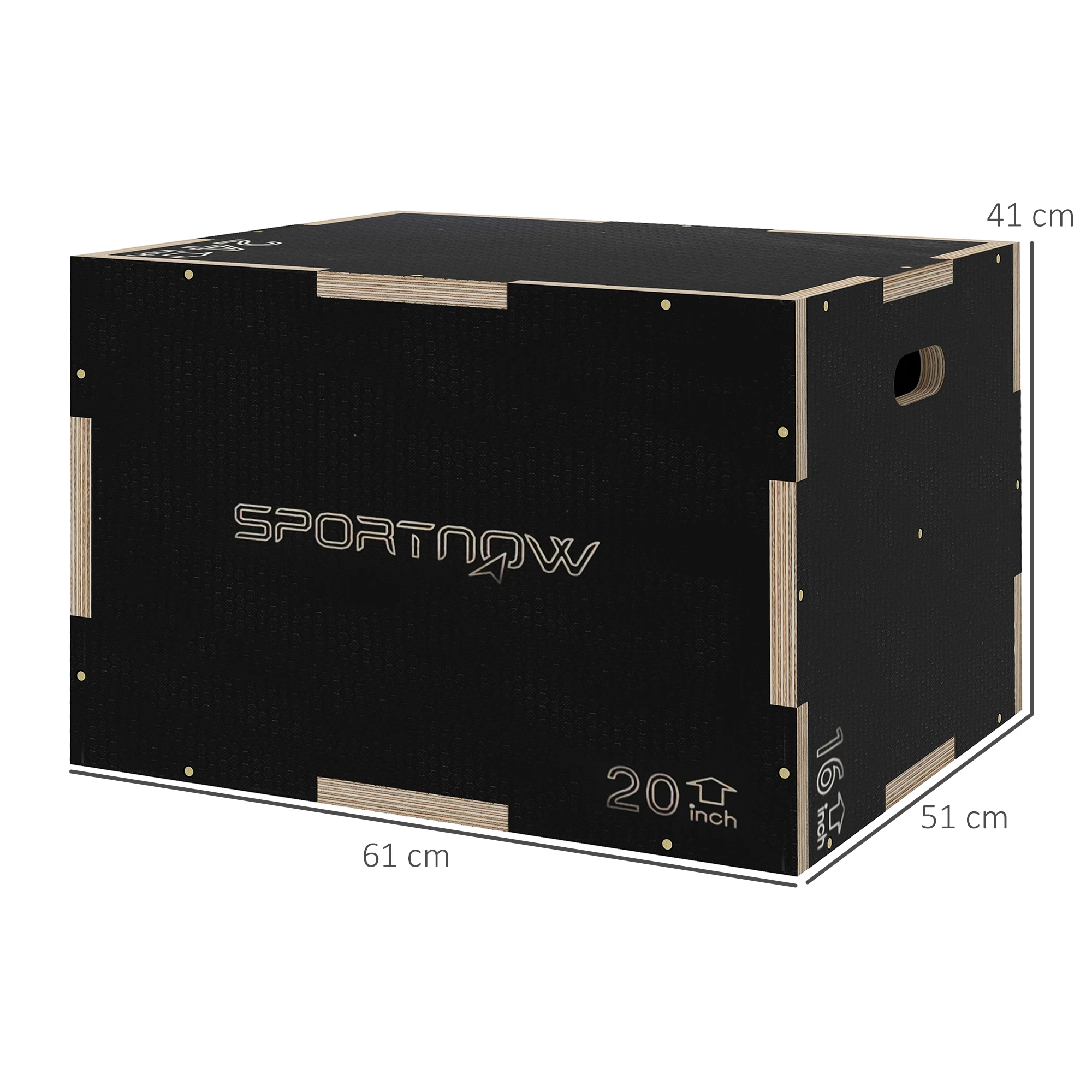 SPORTNOW Cajón Pliométrico Caja Pliométrica con 3 Alturas Diferentes Entrenamiento de Fuerza en Casa Oficina Gimnasia CrossFit Carga 120 kg 61x51x41 cm Negro