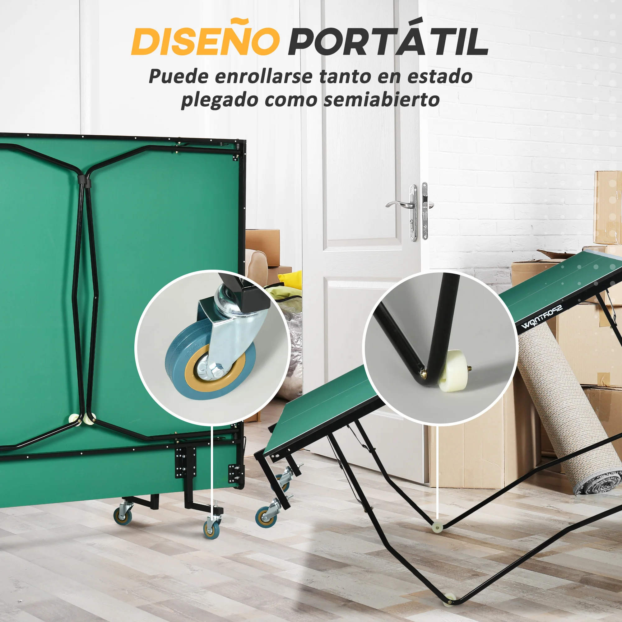 ● Con ocho ruedas, se puede mover fácilmente cuando está plegada o medio abierta