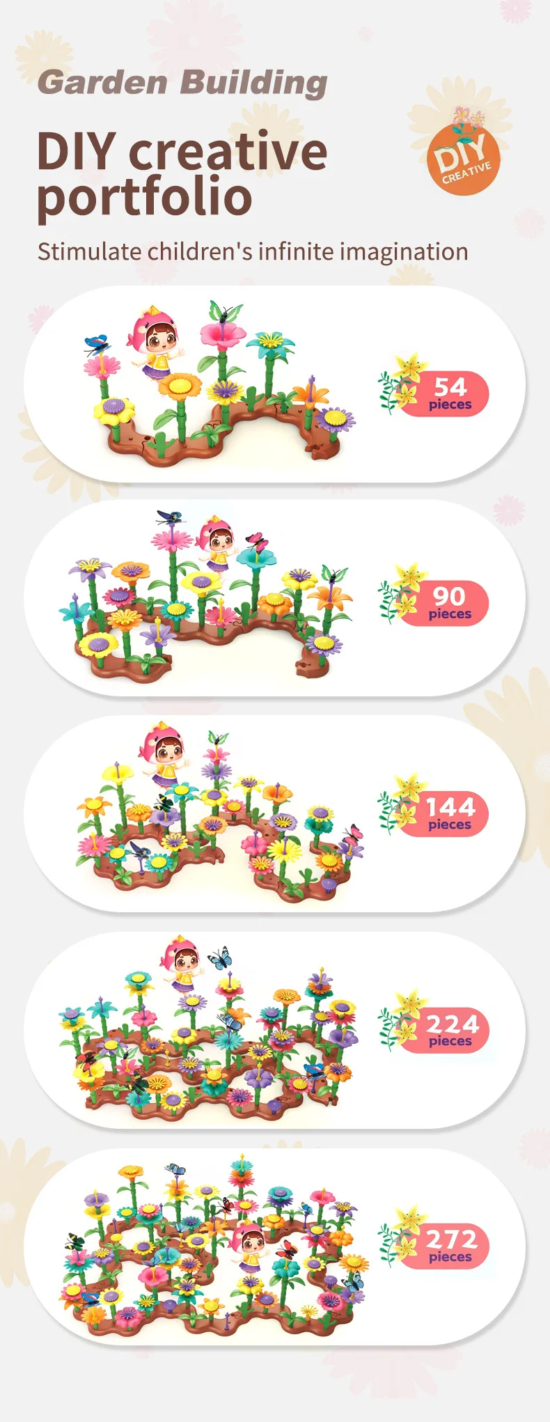 2. 조립하고 재구성하고, 놀고 배우세요: 꽃 정원 조립 세트는 3세 이상 어린이를 위한 훌륭한 학습 장난감입니다.그들은 활동에 참여하고, 건설하고, 재건하고, 놀고, 사고와 문제 해결에 독립적이라는 것을 배웁니다.
