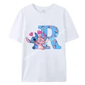 Stitch Disney-camisetas de manga corta para hombre y mujer, camisetas informales con letras de A-Z, ropa familiar, dibujos animados de verano, regalos para adultos