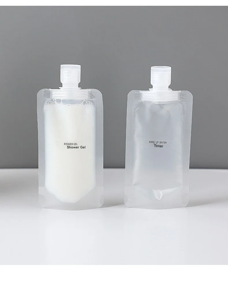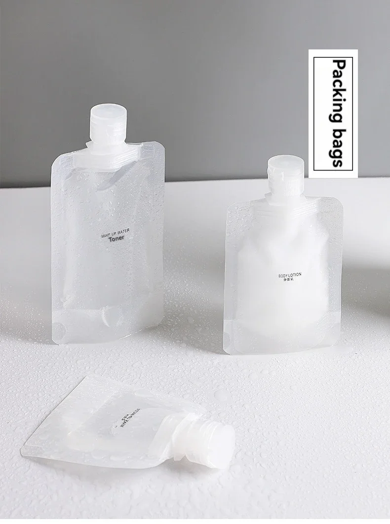 Bolsa de viaje, loción, gel de ducha, champú, pequeño limpiador facial de viaje portátil, botella desechable