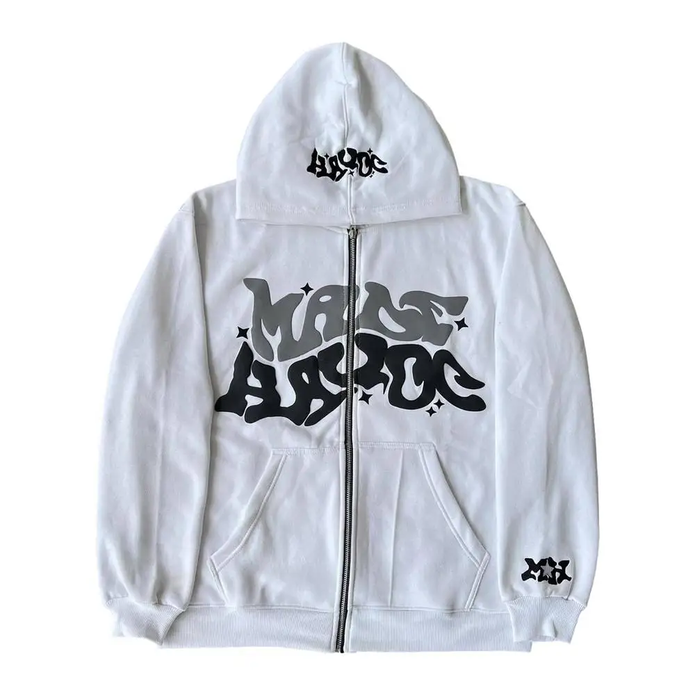 1. Estilo gótico Y2K: nuestras sudaderas con cremallera frontal para hombres encarnan el sentido de la moda callejera gótica Y2K, con letras de hip-hop de moda impresas para darle un aspecto elegante y único.