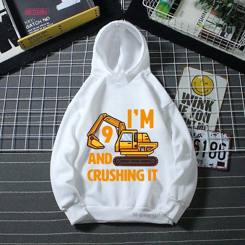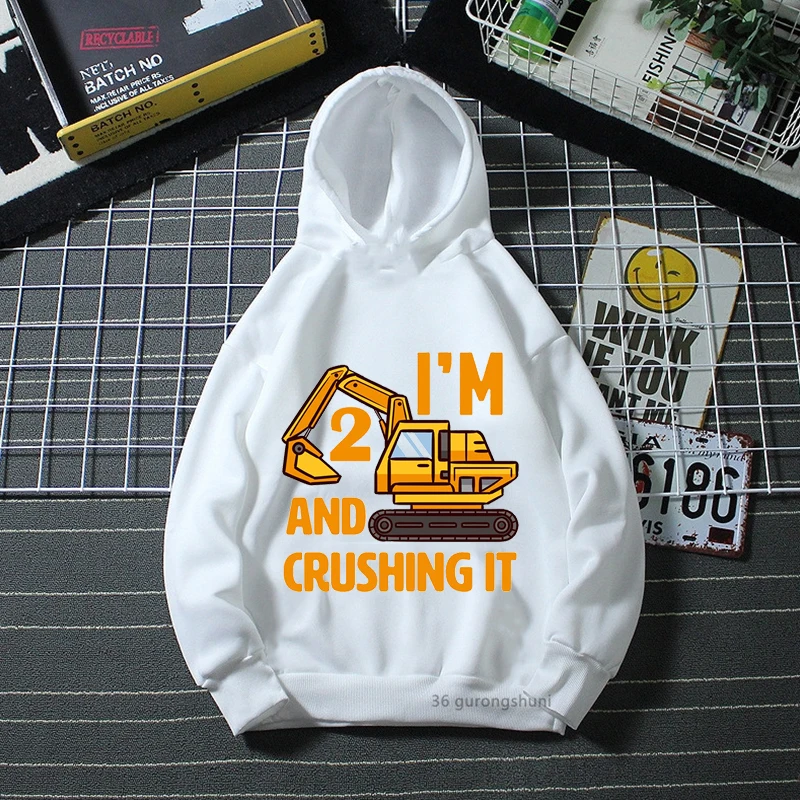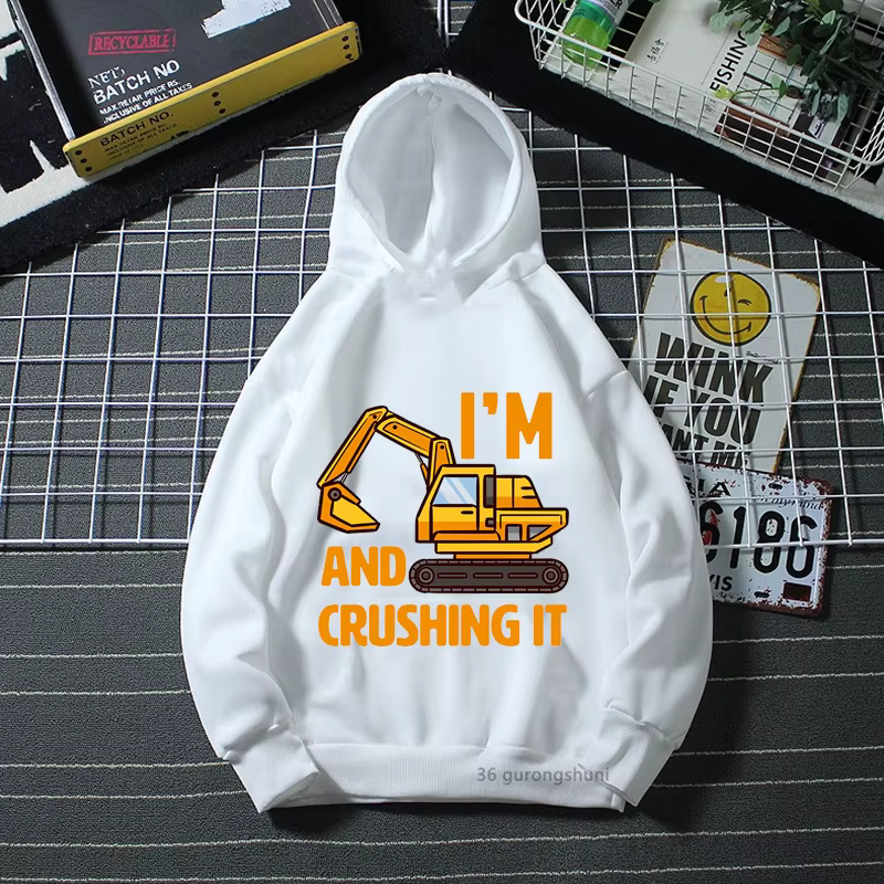 Sudadera con capucha para niños, prenda de vestir manga larga estampado gráfico excavadora interesante, 2, 3, 4, 5-10, regalo cumpleaños, novedad
